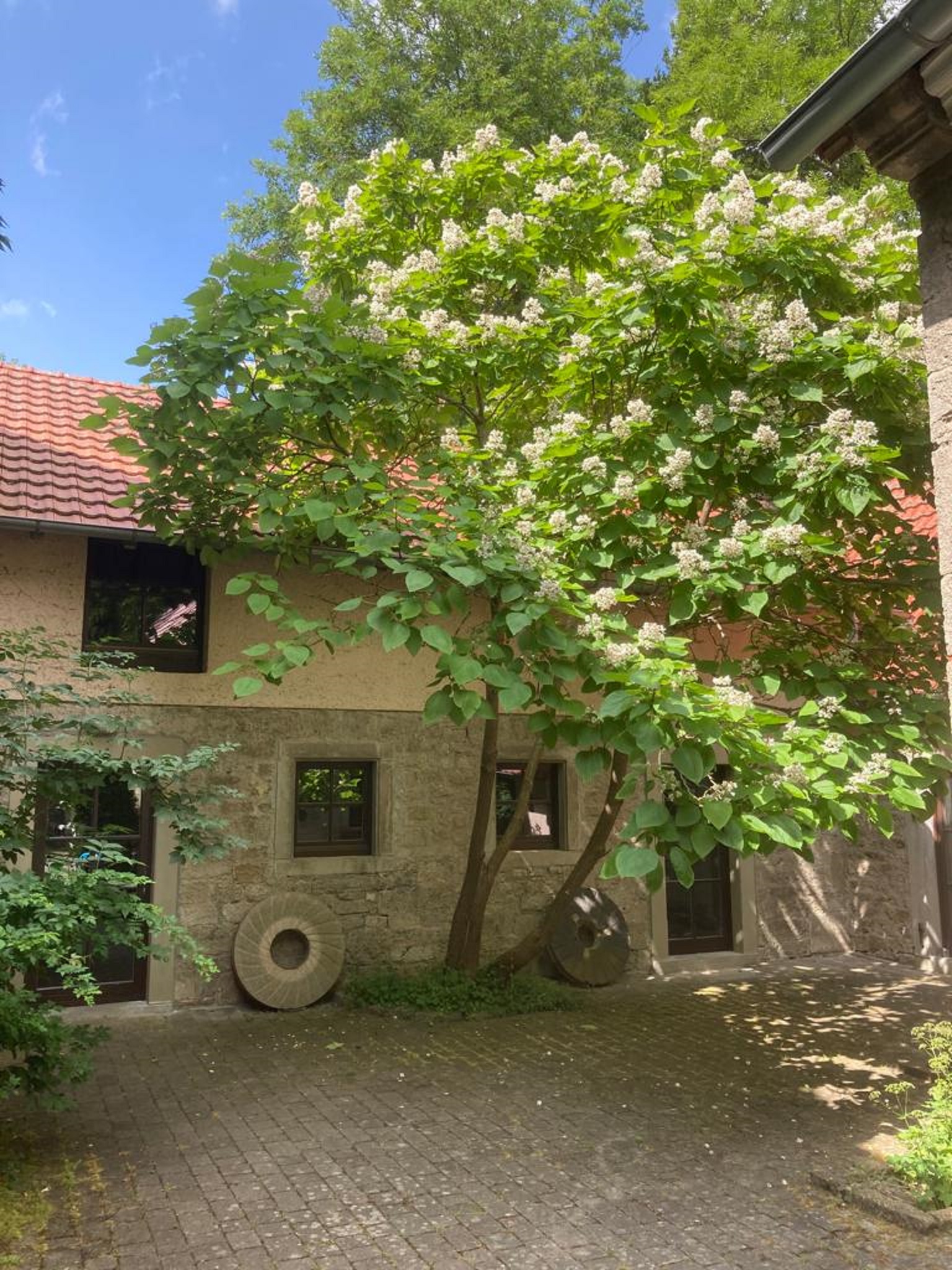 Historisches Mühlenanwesen im Landschaftsschutzgebiet des Gollachtals. Zwischen Würzburg und Rothenburg/Tauber für Feriengäste zu vermieten. Die Wohnung bietet Platz für 2 Personen und befindet sich neben dem Haupthaus. Parkmöglichkeit, Wlan, Handtücher, Bettwäsche sowie eine wunderschöne Sitzgelegenheit im Hof und eine einzigartige Atmosphäre bietet das Anwesen.