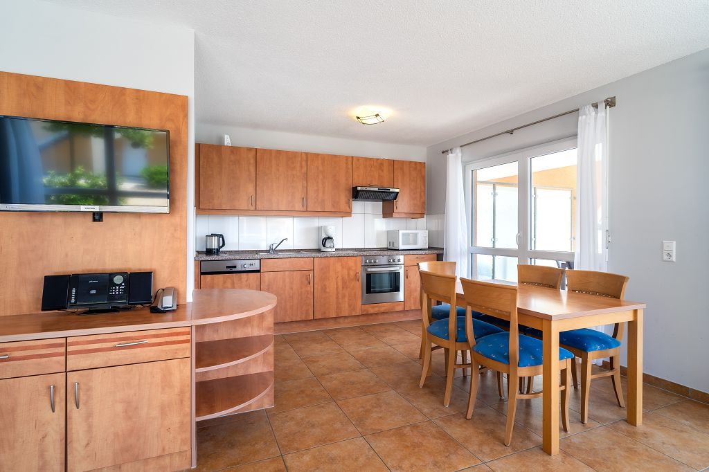 Die Ferienwohnung liegt im Erdgeschoss und ist gemütlich im mediterranen Stil eingerichtet und mit 4 Sternen DTV klassifiziert. Sie befindet sich direkt zwischen Sonnensee und Schwarzfelder Hof, hat eine moderne Einbauküche sowie Bad und WC. Die Küche ist ausgestattet mit Kaffeemaschine, Wasserkocher, Herd mit Dunstabzug, Backofen, Kühlschrank mit Gefrierfach, Mikrowelle, Spülmaschine und Toaster. Für unsere kleinen Gäste haben wir Gitterbettchen, Schemel im Badezimmer, Kindertoilettensitz, Hochstühle sowie Wickeltische mit Babybadewännchen und Windeleimer.