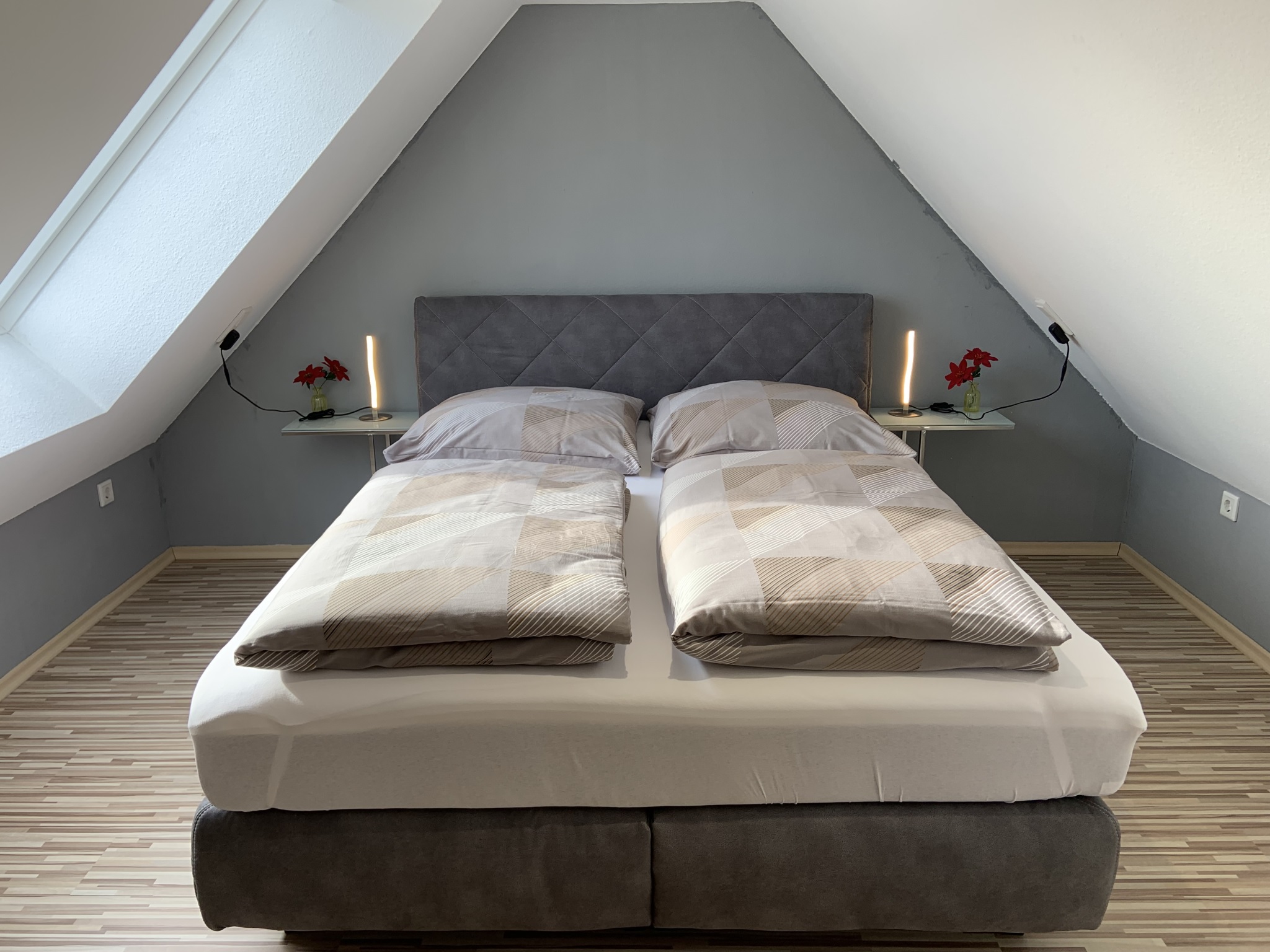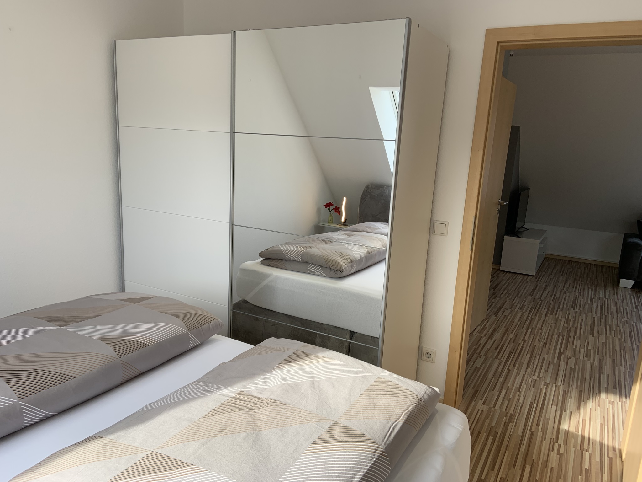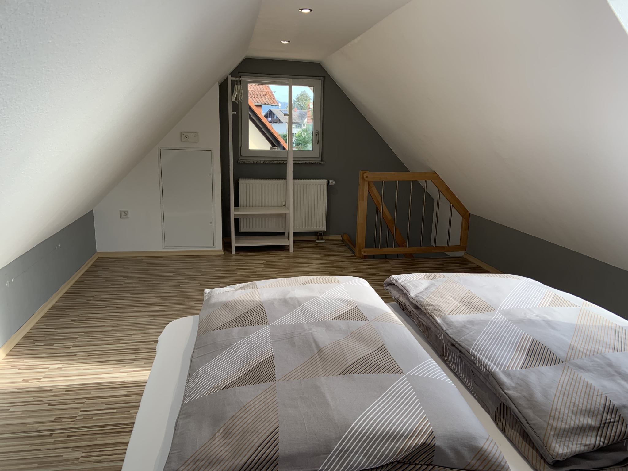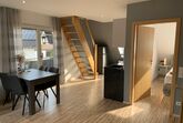 ANKOMMEN & WOHLFÜHLEN! In unserer ca. 60 qm großen Maisonetten-Ferienwohnung bleiben keine Wünsche unerfüllt! Die helle und freundliche Ferienwohnung ist modern und attraktiv eingerichtet. Es können bis zu vier Gäste, plus zwei Kleinkinder bis zu zwei Jahren, anreisen. Ein erholsamer Schlaf ist durch das gemütliche 5* Boxspringbett im separaten Schlafzimmer sicher! Bei Bedarf ist auch ein Babybett vorhanden. Im geräumigen Schrank lassen sich sperrige Gepäckstücke und Klamotten verstauen. Das Highlight unserer Maisonetten-Ferienwohnung ist das zweite Stockwerk hier befindet sich das zweite Schlafzimmer ebenfalls mit einem gemütlichen 5* Boxspringbett. Außerdem befindet sich eine sehr hochwertige, vollausgestattete Küche in der Wohnung (Mikrowelle, Backofen, Herdplatten, Kaffeemaschine, Wasserkocher, Kühlschrank mit Gefrierfach, Küchenutensilien etc.) sowie ein Essbereich. Unseren Gästen steht ein Satelliten-TV 40“- LED und kostenfreies WLAN zu Verfügung. Im eigenen Badezimmer finden unsere Gäste ein WC, ein Waschbecken, einen Föhn und eine Badewanne mit Duschfunktion. Vor allem im Sommer können Sie entspannte Abende auf dem eigenen, großen Balkon ausklingen lassen. Hochwertige Bettwäsche und Handtücher sind ebenfalls in der Ferienwohnung enthalten.