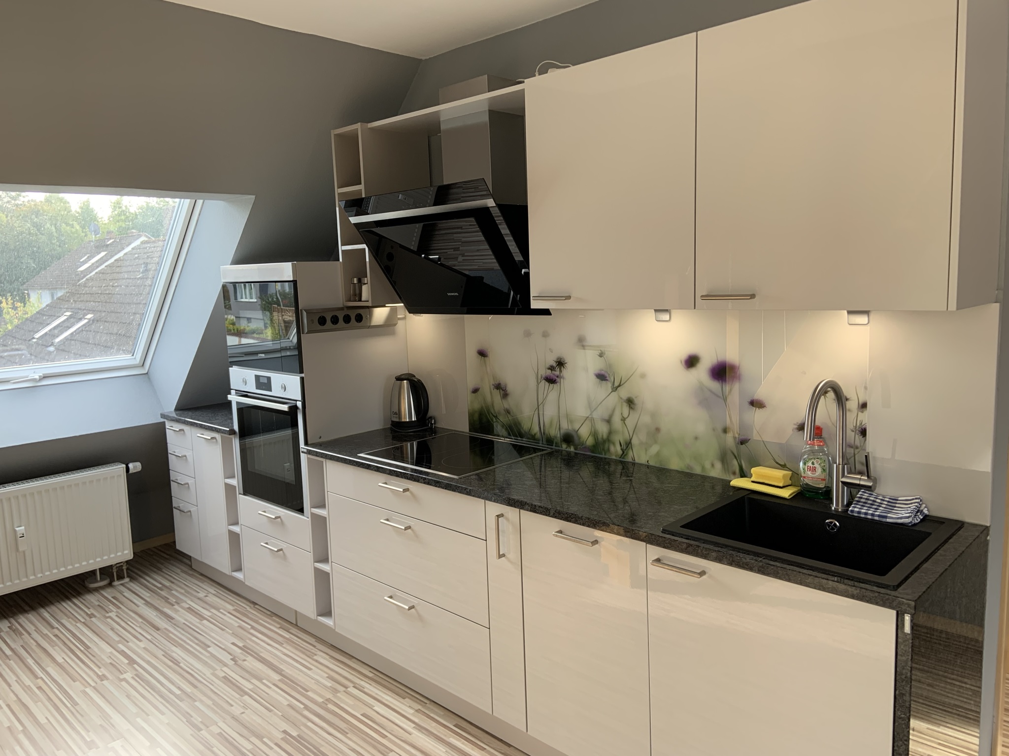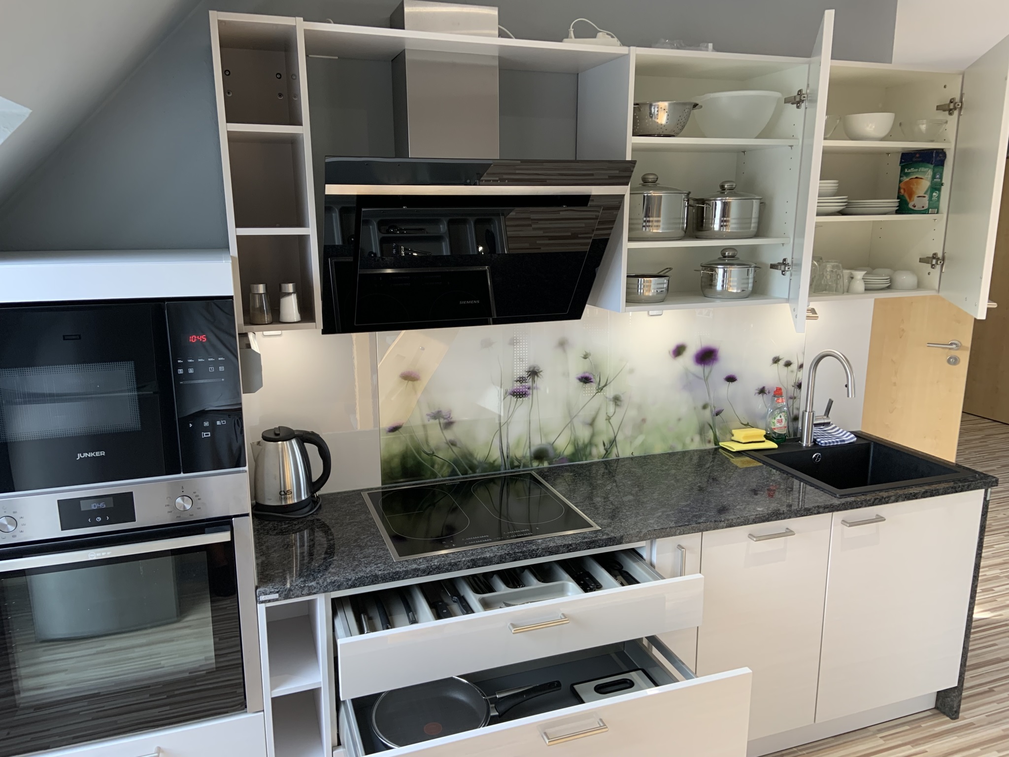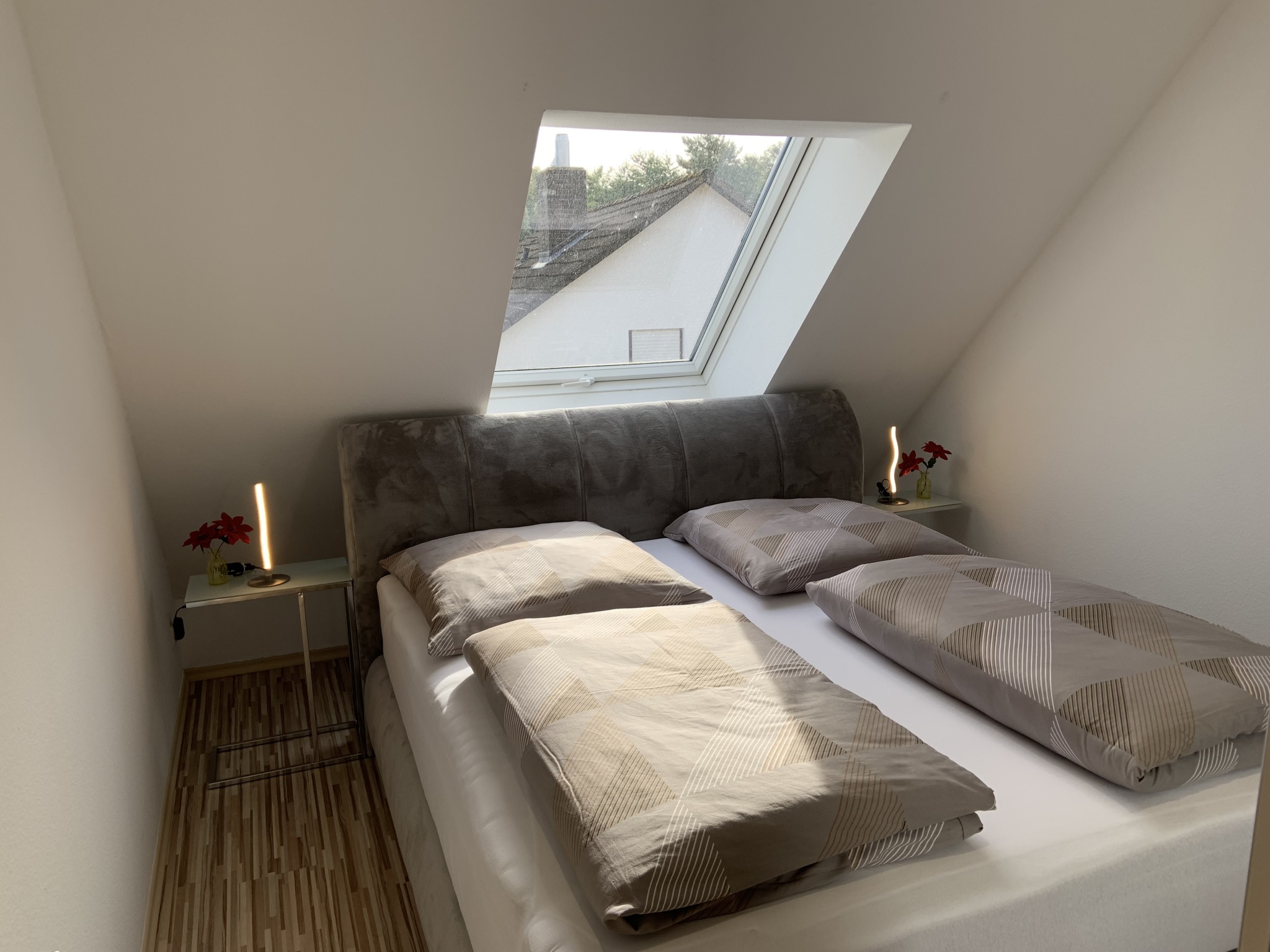 ANKOMMEN & WOHLFÜHLEN! In unserer ca. 60 qm großen Maisonetten-Ferienwohnung bleiben keine Wünsche unerfüllt! Die helle und freundliche Ferienwohnung ist modern und attraktiv eingerichtet. Es können bis zu vier Gäste, plus zwei Kleinkinder bis zu zwei Jahren, anreisen. Ein erholsamer Schlaf ist durch das gemütliche 5* Boxspringbett im separaten Schlafzimmer sicher! Bei Bedarf ist auch ein Babybett vorhanden. Im geräumigen Schrank lassen sich sperrige Gepäckstücke und Klamotten verstauen. Das Highlight unserer Maisonetten-Ferienwohnung ist das zweite Stockwerk hier befindet sich das zweite Schlafzimmer ebenfalls mit einem gemütlichen 5* Boxspringbett. Außerdem befindet sich eine sehr hochwertige, vollausgestattete Küche in der Wohnung (Mikrowelle, Backofen, Herdplatten, Kaffeemaschine, Wasserkocher, Kühlschrank mit Gefrierfach, Küchenutensilien etc.) sowie ein Essbereich. Unseren Gästen steht ein Satelliten-TV 40“- LED und kostenfreies WLAN zu Verfügung. Im eigenen Badezimmer finden unsere Gäste ein WC, ein Waschbecken, einen Föhn und eine Badewanne mit Duschfunktion. Vor allem im Sommer können Sie entspannte Abende auf dem eigenen, großen Balkon ausklingen lassen. Hochwertige Bettwäsche und Handtücher sind ebenfalls in der Ferienwohnung enthalten.