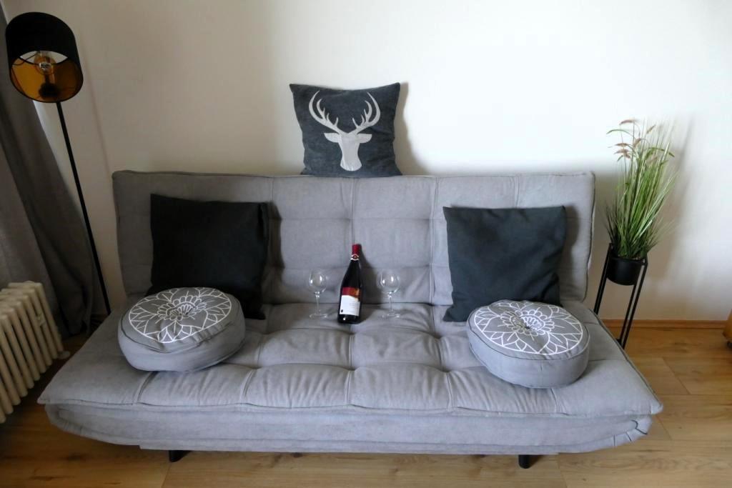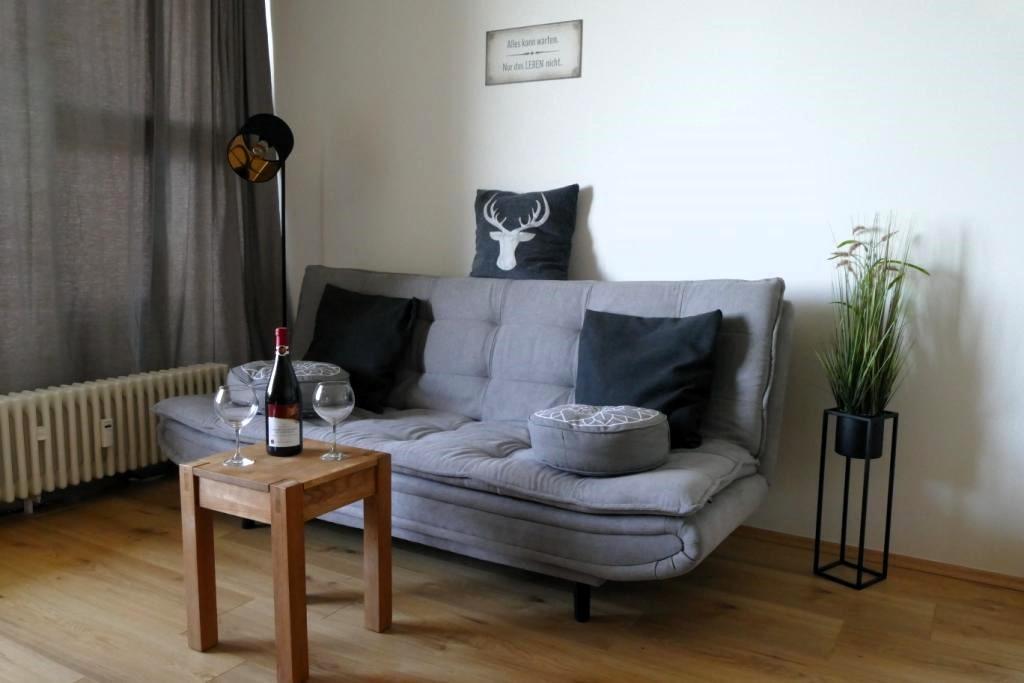 Die Ferienwohnung ist liebevoll und gemütlich eingerichtet und bietet neben einem Doppelbett und einer Schlafcouch (ausgeklappt 1,95 x 1,20 m), Kabel-TV, kostenlos WLAN und eine gemütliche Essecke.