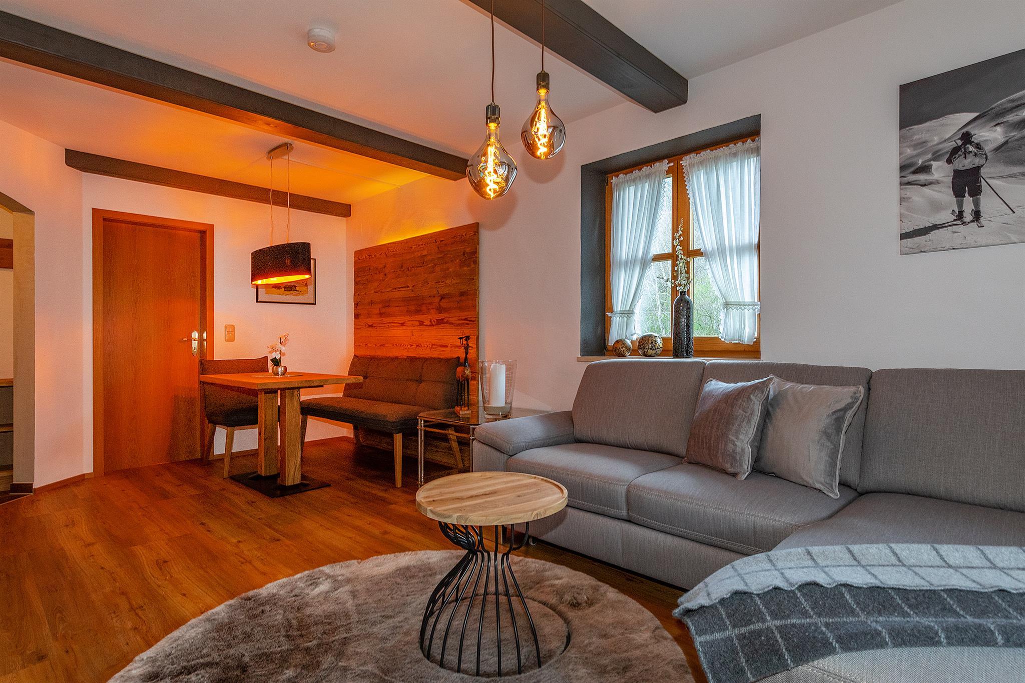 Drei moderne, im alpenländischen Stil mit viel Charme eingerichtete Ferienwohnungen und ein wunderschönes Panorama laden Sie ein, den Alltag zu vergessen und die Seele baumeln zu lassen. Alpines Ambiente und natürliche Materialien sorgen für eine gepflegte Atmosphäre und ein gesundes Wohnklima.