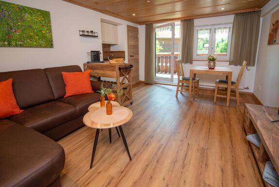 Ferienwohnung Bergkingese Kuschelige Ferienwohnung ... für Singles oder Frischverliebte Die Ferienwohnung Bergkingese zeichnet sich durch ihre kompakte Art aus. Mit der kleinen Wohnküche, dem begehbaren Kleiderschrank und dem offenen Schlafzimmer ist sie perfekt für Singles oder Frischverliebte gedacht. Am Abend können Sie den Tag auf dem Balkon ausklingen lassen.