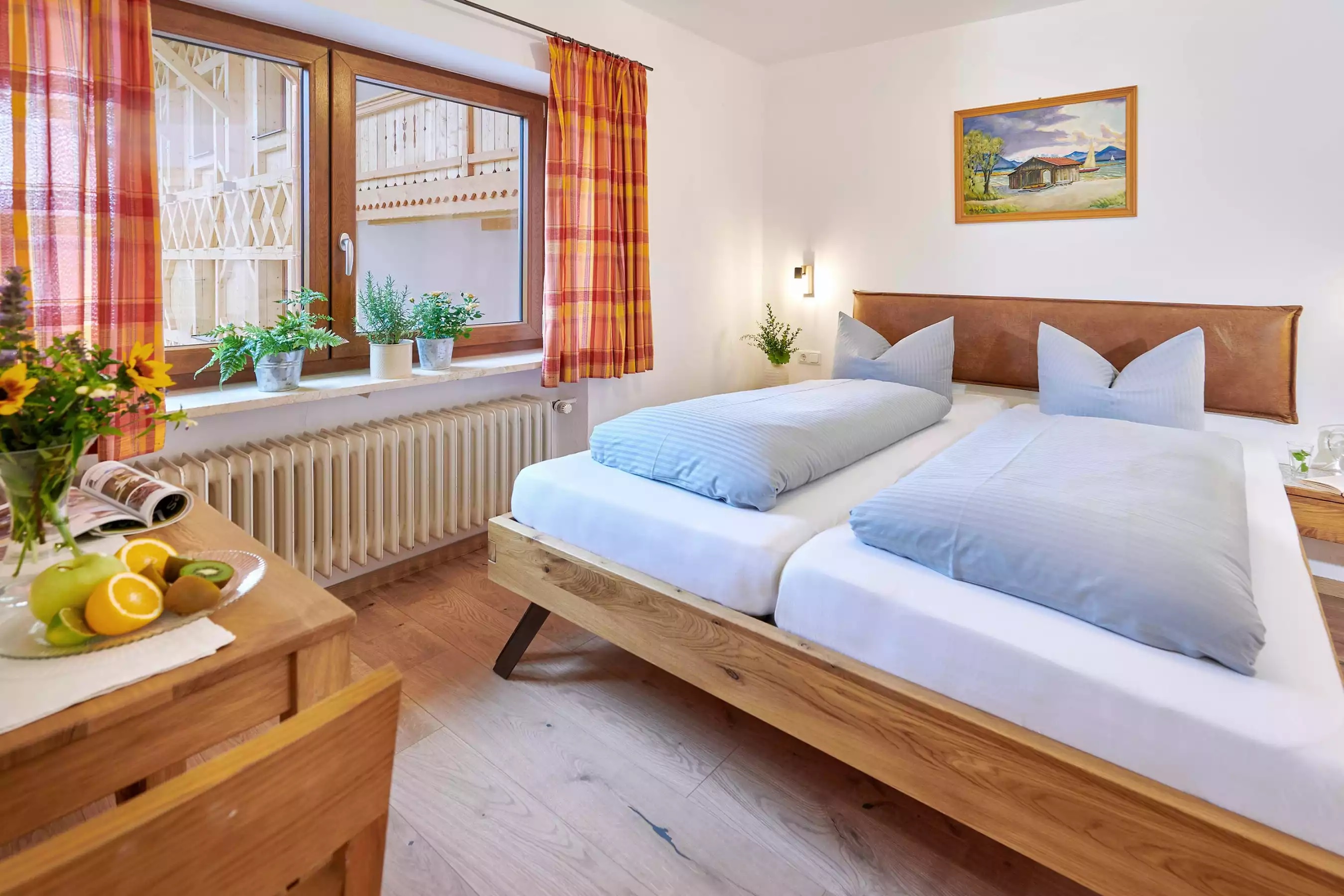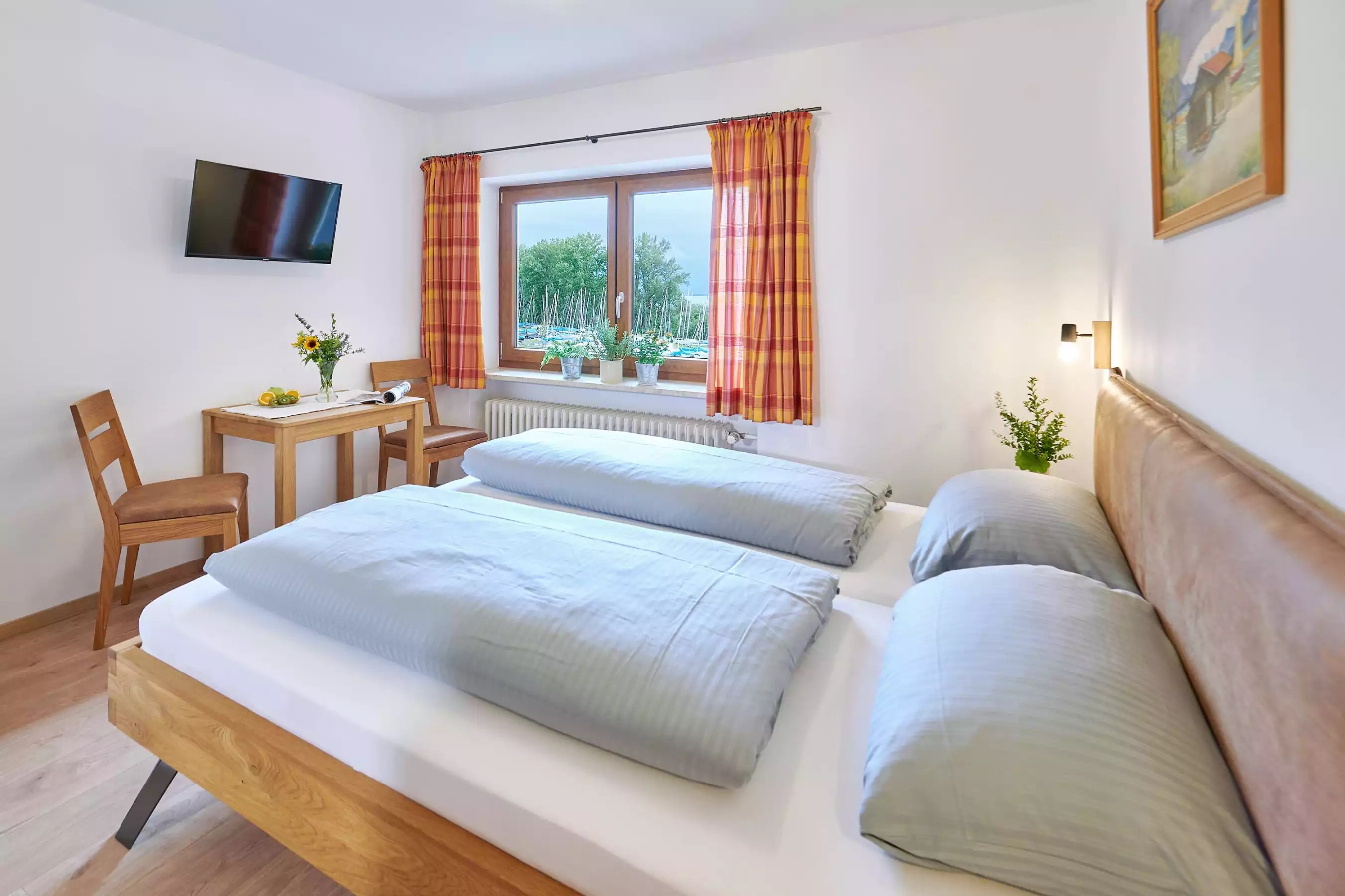 Freundlich, hell und einladend empfängt das Doppelzimmer Nummer 1 mit Frühstück die erholungssuchenden Gäste auf dem Urlaubshof Kirchmaier am Chiemsee. Hier lässt es sich nach einem ereignisreichen Urlaubstag rund um das Bayerische Meer in Ruhe nächtigen. Das Doppelzimmer bietet alles, was es für eine entspannte Übernachtung braucht. Ein bequemes Doppelbett ist fertig für die Urlaubsgäste bezogen und nach dem Bad mit Dusche und WC kann es frisch auf in den neuen Urlaubstag gehen.