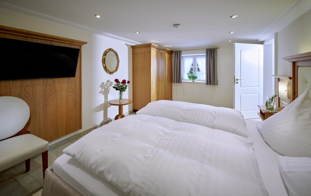 Die Ferienwohnung ist in Richtung Norden zur Kirche ausgerichtet. Alle Fewo´s sind ausgestattet mit Flachbild-Fernseher 40 bzw. 43 Zoll, Herd mit Backofen, Spülmaschine, Kühlschrank mit Gefrierfach, Kaffeemaschine, Toaster, Kochgeschirr, Geschirr, Safe, Föhn, WLAN, Geschirrtücher, Bettwäsche und Handtücher.Für alle Gäste: Aufzug, Aufenthaltsraum im EG, Waschmaschine, Trockner im EG, Terrasse im EG, Park (5000 m²) mit Liegen, ausreichend Parkplätze, abschließbare Fahrradgarage und Sauna.