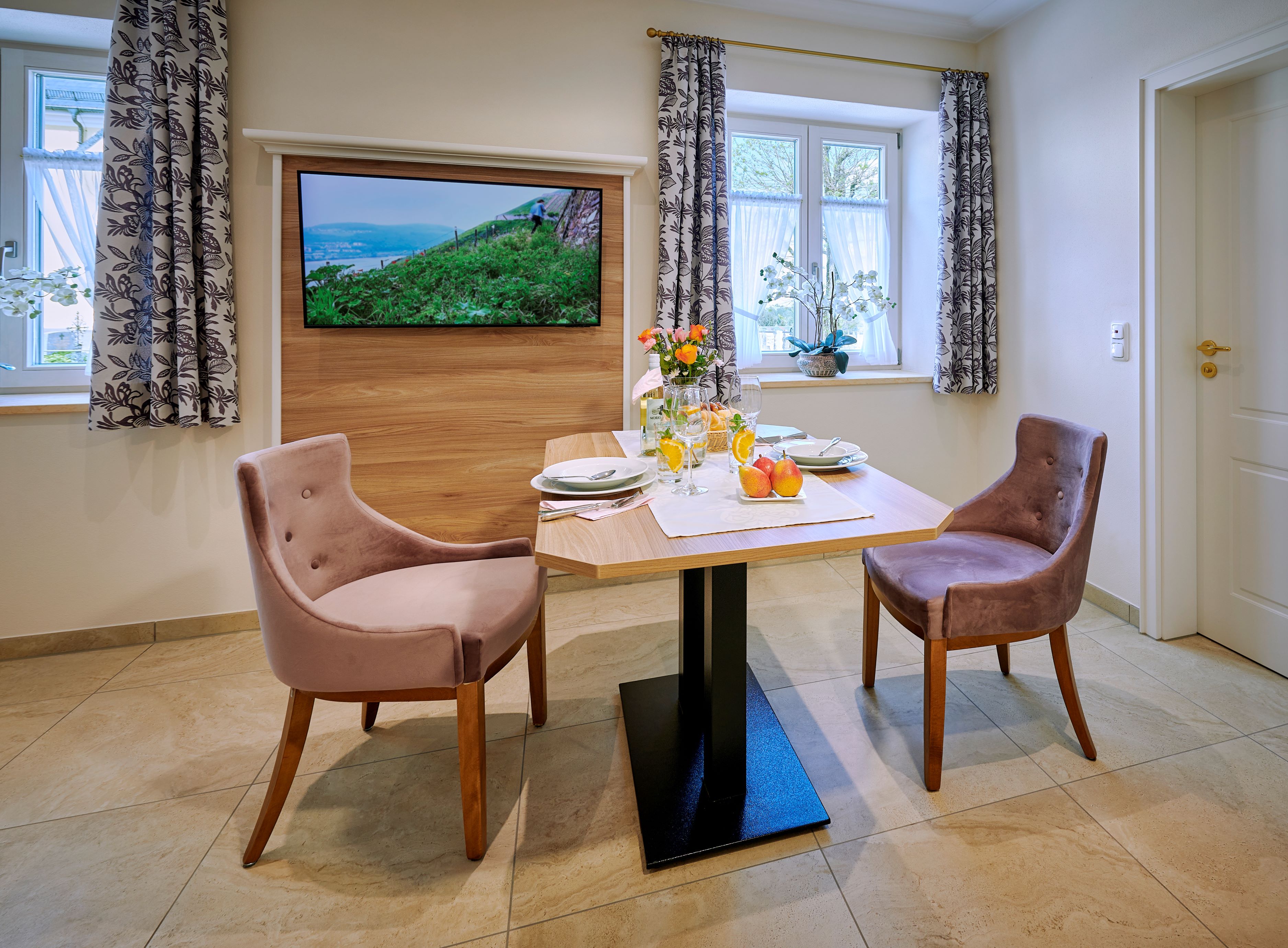 Das Bonnschlössel ist ein Ort mit Geschichte, an dem Sie in unseren neu gestalteten Ferienwohnungen die schönste Zeit des Jahres genießen können. Tauchen Sie ein in die Vergangenheit unseres Hauses! Der große Park mit seinem alten Baumbestand und die großzügige Terrasse laden zum Entspannen ein und im Haus begegnen Sie immer wieder der Zeugnissen aus vergangenen Zeiten des Bonnschlössls.In unseren mit viel Liebe zum Detail neu gestalteten Ferienwohnungen genießen Sie stilvoll Ihre schönsten Tage des Jahres: moderne Materialien und edles Design in Einklang mit der Geschichte des Hauses. Entspannen Sie! …im Haus, mit einem Glas Wein auf der Terrasse oder auf dem Liegestuhl in unserem großen Park – Sie sollen während Ihrem Aufenthalt in unseren Ferienwohnungen im Bonnschlössl am Chiemsee nichts vermissen! Die zehn Ferienwohnungen im Bonnschlössl sind unterschiedlich groß, aber alle sind mit maßgeschreinerten Möbel stilvoll eingerichtet. Der fantastische Blick in die Chiemgauer Bergwelt ist von vielen Wohnungen aus kostenlos zu genießen.Die Ferienwohnungen im 1. und 2. Stock sind alle bequem mit einem Lift erreichbar. Die großzügige Terrasse und ein gemütlicher Aufenthaltsraum laden zum Verweilen ein. Die große Parkanlage mit Sonnenliegen kann jederzeit gerne genutzt werden.Entspannung und Erholung finden Sie auch in unserem kleinen, aber feinen, Wellnessbereich. Hier stehen Ihnen ein Saunabereich und verschiedene Verwöhnprogramme (nach Terminvereinbarung) zur Verfügung! Unseren Gästen, die eine Ferienwohnung in Bernau am Chiemsee gebucht haben, stehen außerdem der Waschraum im EG mit Waschmaschine und Trockner zur freien Verfügung.Damit auch die PKW´s & Bikes den Urlaub genießen können, sind ausreichend Parkplätze sowie eine abschließbare Fahrrad-Garage vorhanden. Ebenso finden Sie eine Lade-Box für E-Auto's.