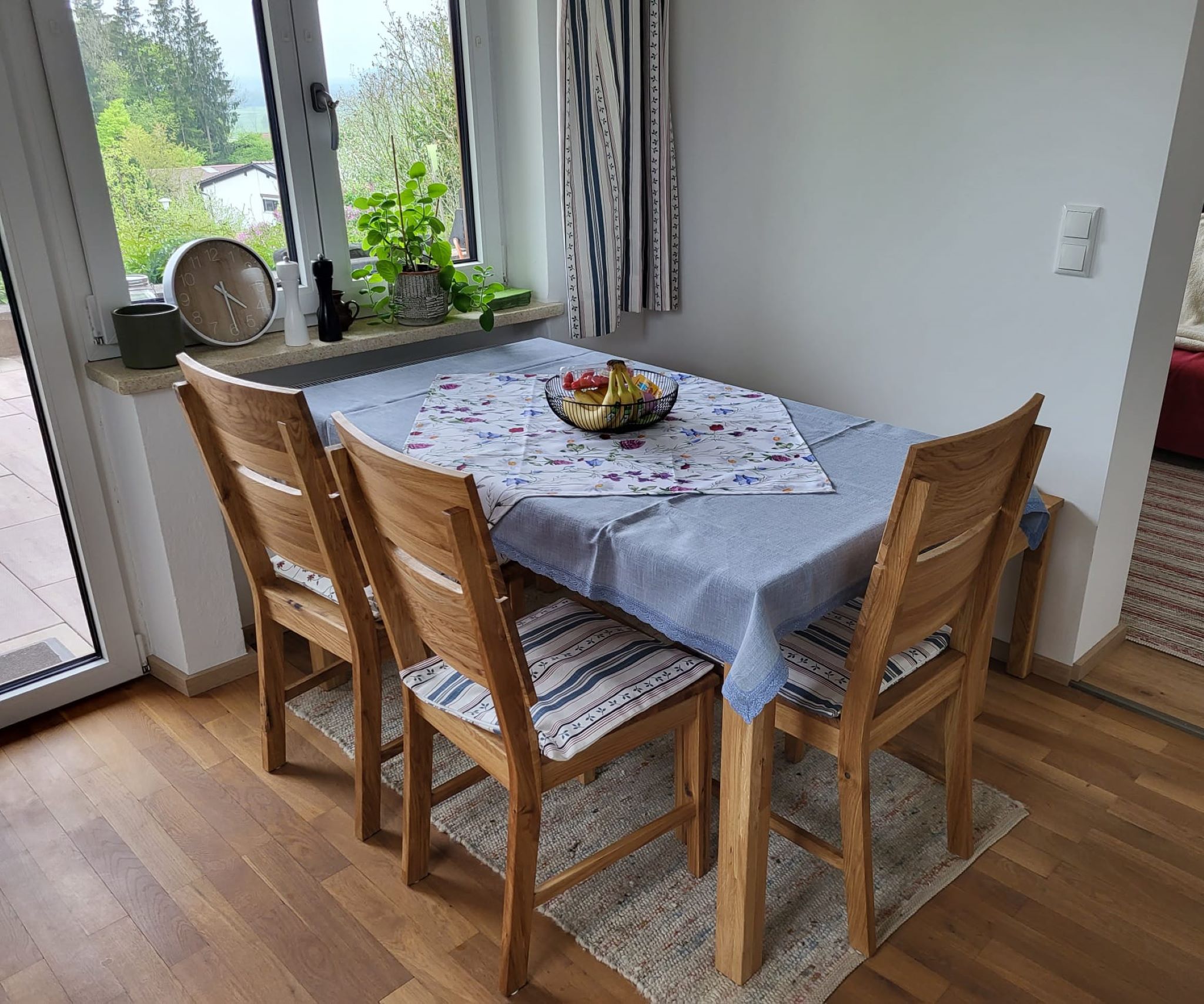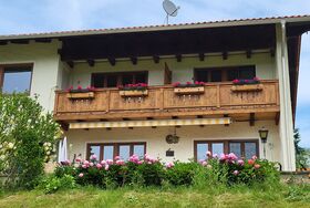 Unser Gästehaus in Bernhaupten liegt in einer ruhigen Wohnlage an einer Südhanglage mit unverbauten Panoramablick auf unsere Hausberge Hochfelln und Hochgern und Kampenwand. Zudem verfügen wir über einen großen Garten mit Schaukel. In unmittelbarer Nähe befindet sich noch ein Spielplatz. Bernhaupten gehört zur Gemeinde Bergen. Der Ortskern ist 3 km von uns entfernt. Bergen selbst ist ein lebendiger Ort mit Kurpark, Kneippanlage, Naturfreibad mit Beachvolleyballanlagen, Einkaufsmöglichkeiten, Restaurants und Veranstaltungen. Direkt vom Haus weg sind Wanderungen und Radtouren in die Chiemgauer Berge oder zum Chiemsee möglich. Auch führt der Radweg Königsee-Bodensee in unmittelbarer Nähe an unserem Haus vorbei. Der Bahnhof ist fußläufig in 10 Minuten zu erreichen. Womit einem Tagesausflug mit der Bahn nach Salzburg, Rosenheim, München oder Traunstein nichts im Wege stünde. Ebenfalls befindet sich in Bahnhofsnähe ein kleiner Supermarkt der Ihren täglichen Bedarf abdeckt. Ihre Frühstücksbrötchen werden bei Bedarf von unserem heimischen Bäcker bis vor die Haustüre geliefert.