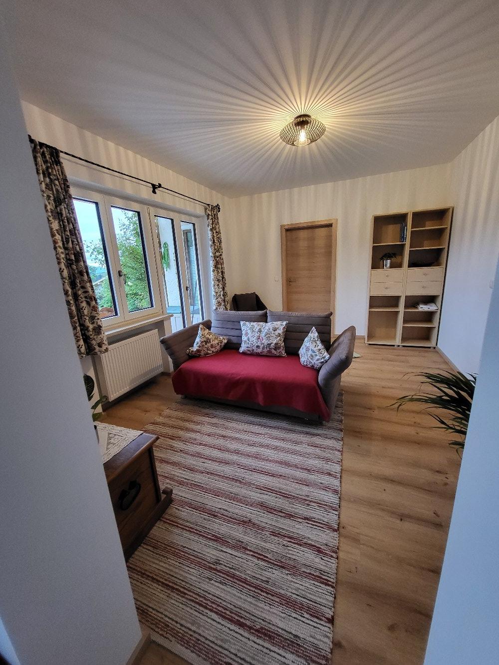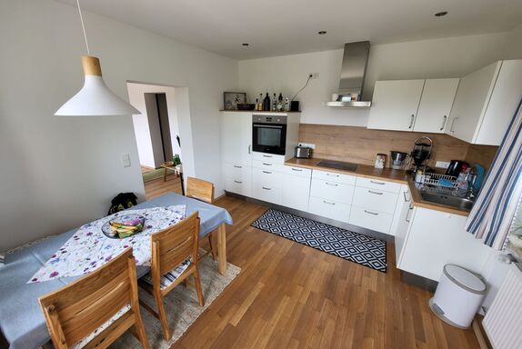 Im Erdgeschoss befindet sich unsere großzügige gepflegte Ferienwohnung mit zwei Schlafzimmer. Jedes Schlafzimmer verfügt über ein eigenes Badezimmer mit Dusche und WC. Die Wohnung ist ideal für Familien geeignet. 2-4 Personen können hier eine entspannte Zeit genießen. 5. und 6. Person bitte auf Anfrage. Von der separaten Küche und vom Wohnzimmer haben Sie einen Zugang zur großen Terrasse, die nach Süden ausgerichtet ist und Ihnen einen traumhaften Panoramablick in unsere Berge bietet. Auf der großen Terrasse können Sie am Abend einen herrlichen Sonnenuntergang bei einem Gläschen Wein oder Bier genießen. Diese Wohnung kann auch mit nur 1 Schlafzimmer und 1 Bad zum ermäßigten Preis gebucht werden - bitte nachfragen.