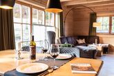 Das reduzierte Design trifft auf edle Materialien und Zirbenholz-Möbel, deren Duft nachweislich die Erholung fördert. Für Wellness sorgt eine Dampfdusche in den En-Suite-Badezimmern, zum Wohlfühlen der großzügige Wohn-, Ess- und Kochbereich mit Kamin (ca. 40 m²).