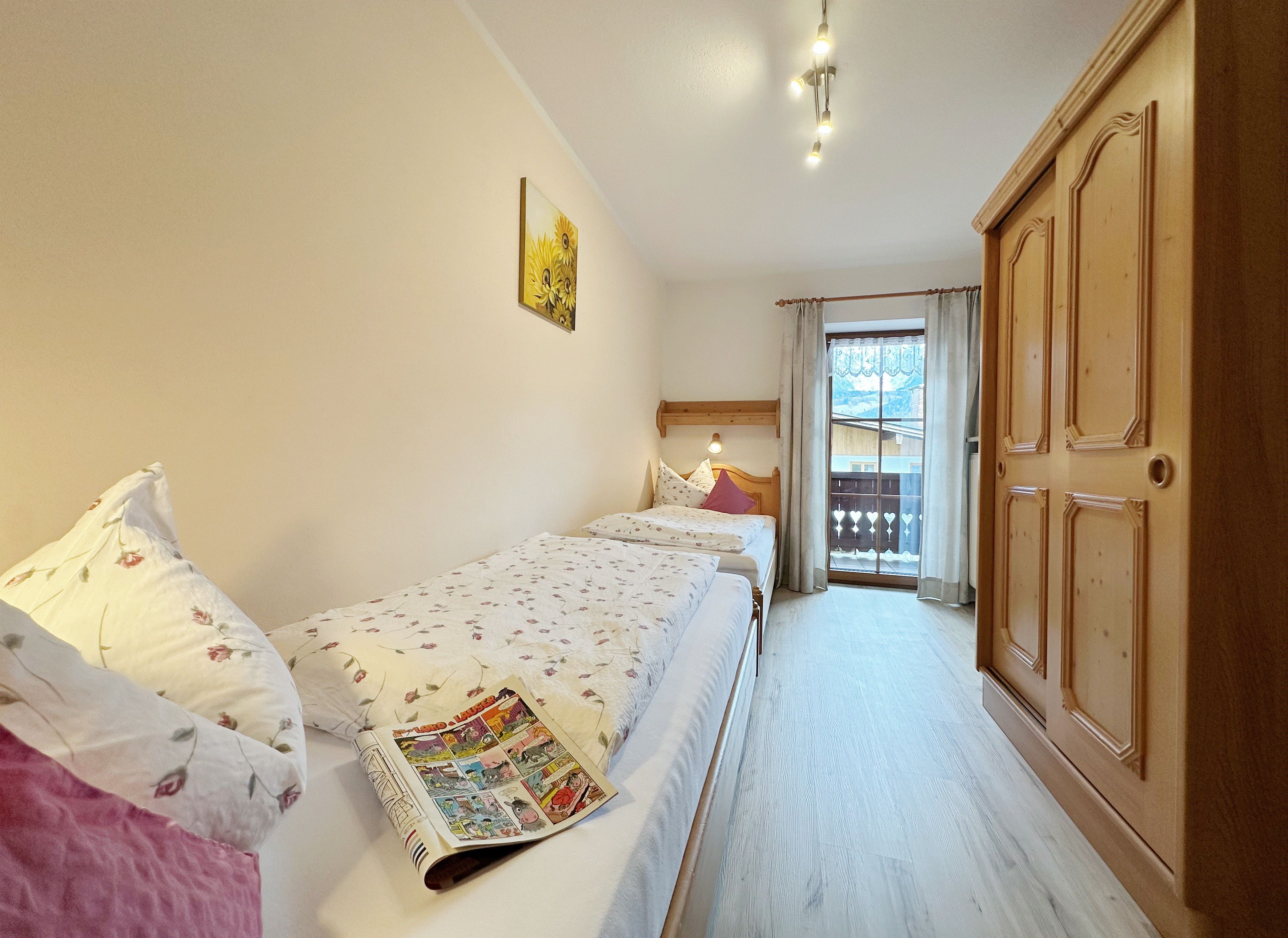 Die im Landhausstil eingerichtete Ferienwohnung bietet Ihnen 2 separate Schlafzimmer, Dusche/WC, Wohnküche mit Couch und Essecke, Küchenzeile, Spülmaschine, Toaster, Mikrowelle und Kaffemaschine, Kabel-TV, sowie einen Balkon mit Balkonmöbel.Unsere Ferienwohnung wurde nach dem Klassifizierungssystem des Deutschen Tourismusverbandes als Ferienwohnung/Ferienhaus mit 4 Sternen klassifiziert.