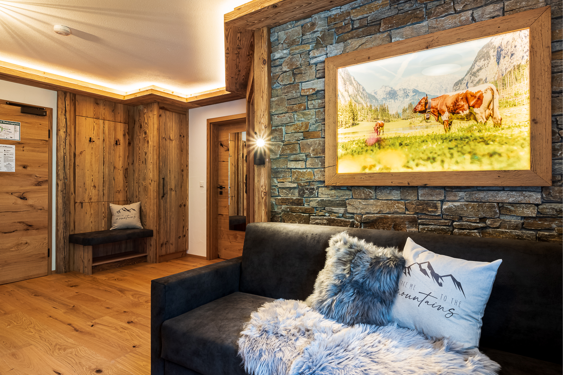 Die komplett neuen Appartements für 2-4 Personen ( neu seit April 2024 ) sind mit Küche, Schlafzimmer, Badezimmer, Wohn-Essbereich ausgestattet entweder mit Balkon oder Terrasse, aller verfügen über Bergblick, ebenso erwartet Sie ein neuer Saunabereich mit Infrarotkabine welcher inklusive ist!