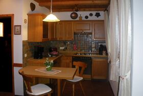 Duschbad. Sie bietet eine gut ausgestattete Küche mit Theke sowie ein Wohnzimmer mit Kachelofen.