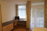 Das Apartment 109 kann auf Anfrage mit dem benachbarten Einzelzimmer (110) zu einer ca. 52 m² großen Wohnung mit 2 Bädern verbunden werden.