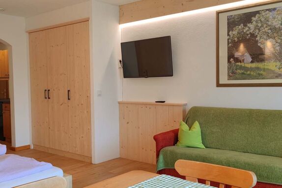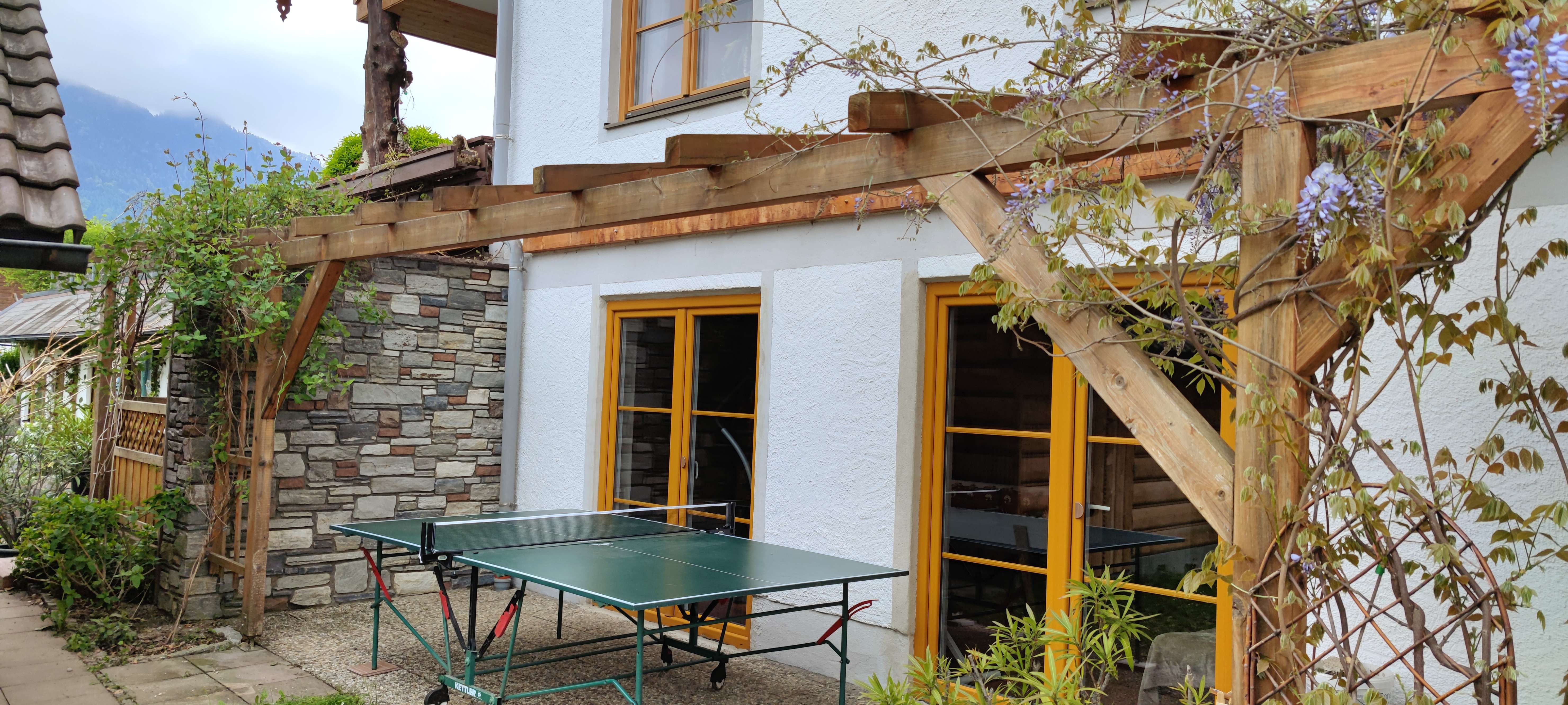 Vor dem Zimmer ist ihre eigene Terrasse mit Gartenmöbeln und Blick auf den Obstgarten, Pferdekoppel und den Berggipfeln der Inntalerberge. Der Spielplatz für die Kinder ist gleich um die Ecke.
