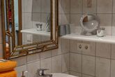 Im Badezimmer befindet sich eine Dusche, WC, Handtücher, Waschbecken mit Spiegel/Kosmetikspiegel, Handtuchtrockner und einen Föhn.