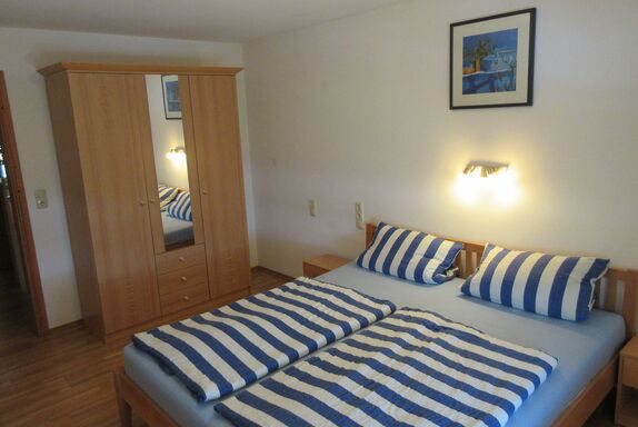 Unsere liebevoll eingerichtete Ferienwohnung befindet sich in der zweiten Etage und bietet Ihnen alles, was Sie für einen entspannten Aufenthalt benötigen. Das Apartment verfügt über ein Schlafzimmer mit einem komfortablen Doppelbett und einem geräumigen Kleiderschrank für Ihre persönlichen Gegenstände. Im Wohnraum befindet sich zudem ein Schlafsofa, das zusätzliche Schlafmöglichkeiten bietet.