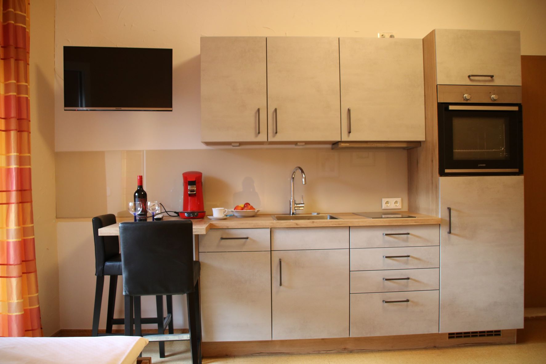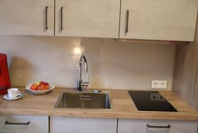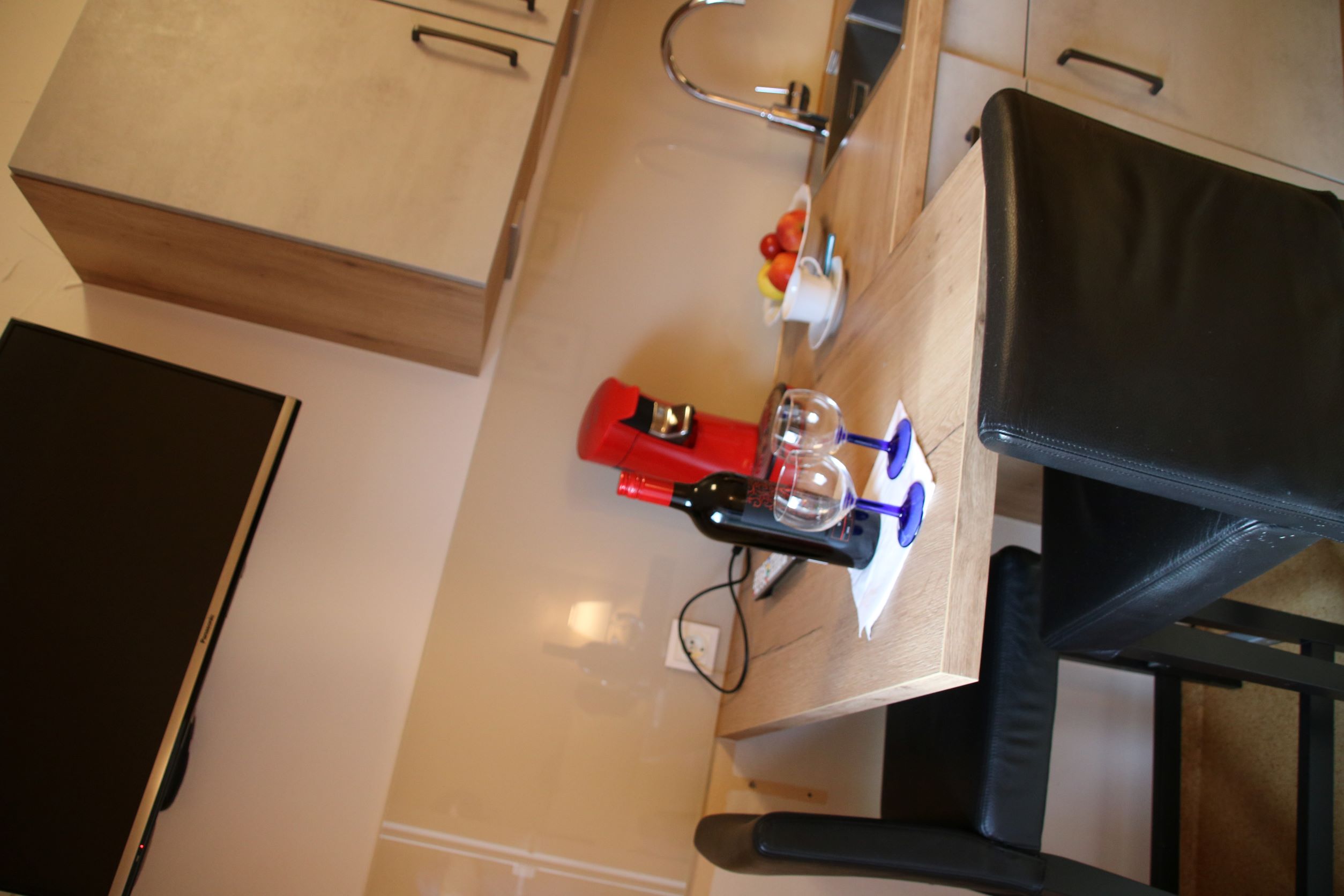 Die Einbauküche ist mit Backofen, Kochfeld, Kühlschrank, Spülmaschine und Kaffeeautomat ausgestattet. Ein TV-Gerät und kostenloses WLAN sorgen für Unterhaltung. Hunde auf Anfrage, wir berechnen 8€ pro Nacht/Tier.