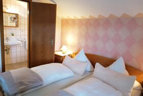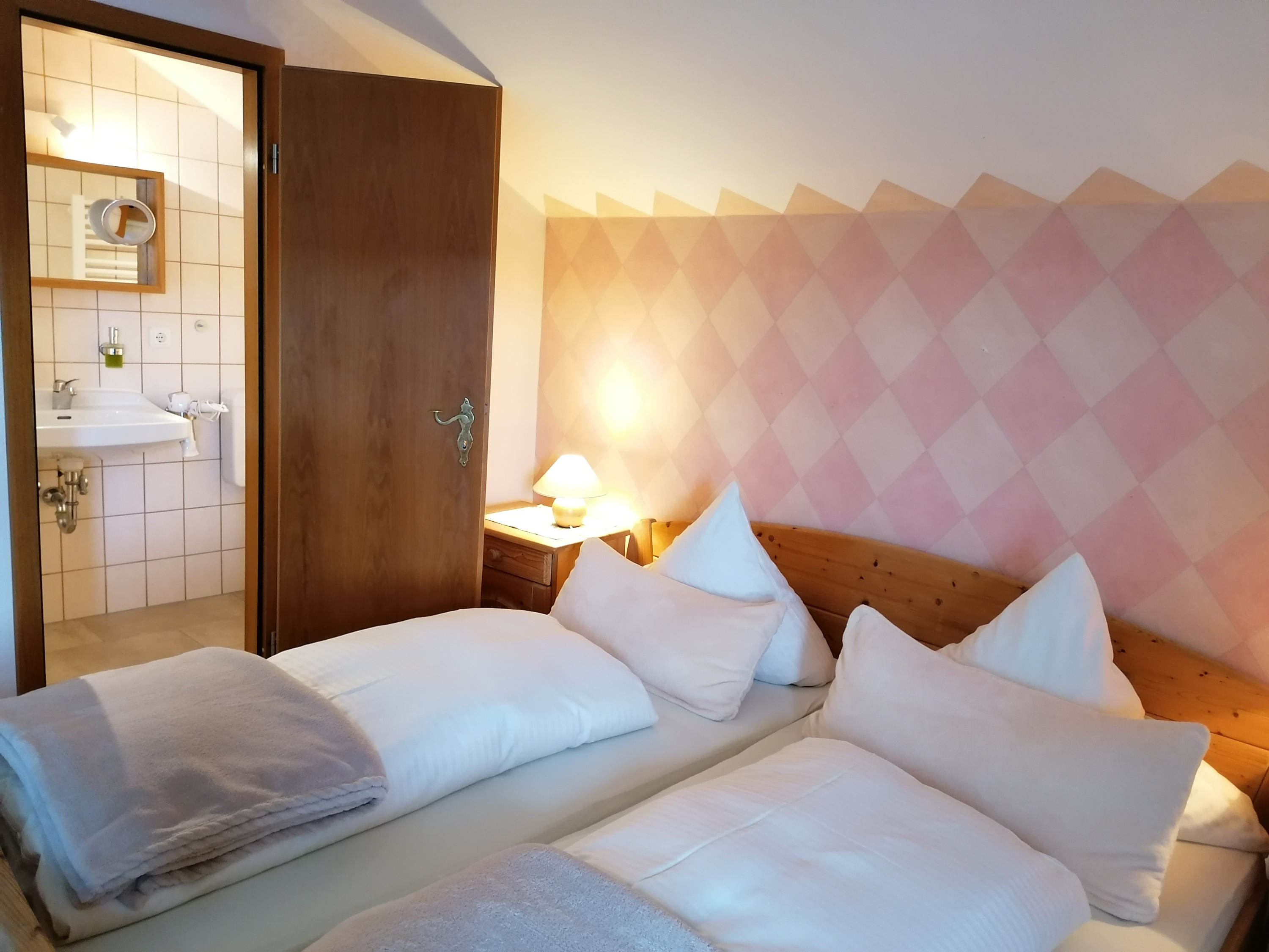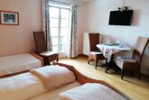 Helles, geräumiges Zimmer im 2. Stock. Zur Ostseite mit Balkon. Ausgestattet mit Dusche/WC, TV, Föhn und Wasserkocher.Zwei Zusatzbetten auf Anfrage möglich.