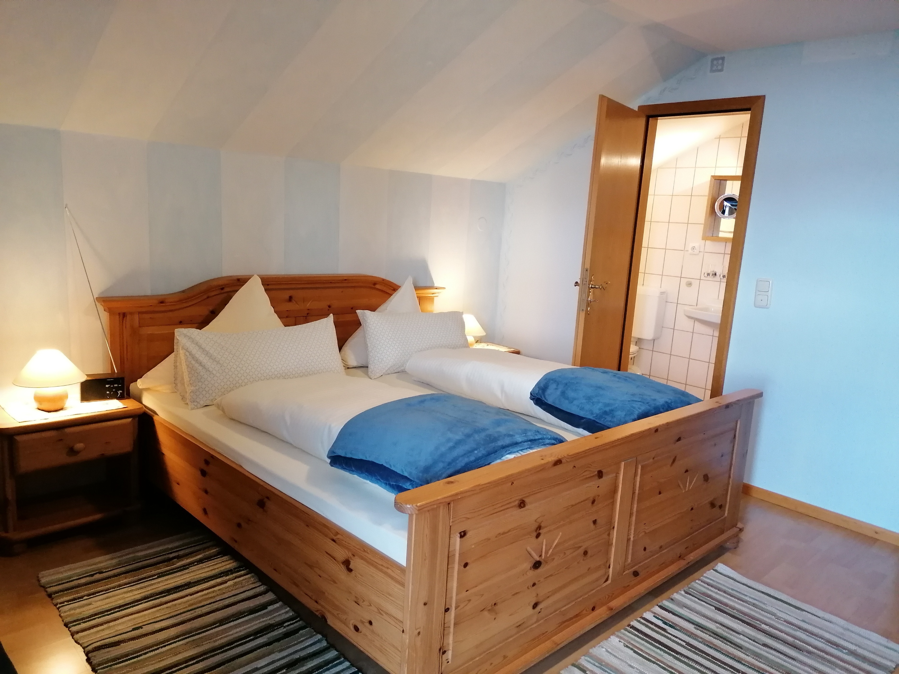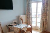 Helles, geräumiges Zimmer im 2. Stock. Zur Ostseite mit Balkon. Ausgestattet mit Dusche/WC, TV, Föhn und Wasserkocher.Zusatzbett auf Anfrage möglich.