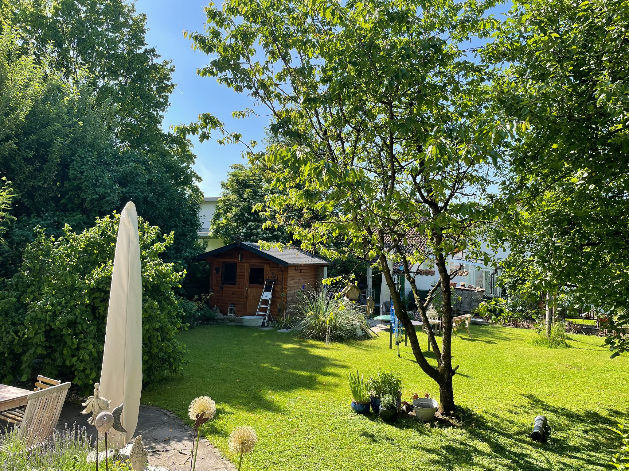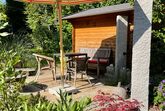 Wir bieten eine Übernachtungsmöglichkeit für maximal zwei Personen in unserem Gartenhäuschen aus Holz, direkt im Garten. Im Gartenhäuschen mit Korkboden und 7,85 Quadratmeter befindet sich ein Bett aus Buche (140 x 200), ein Stuhl und ein Nachttisch. Auf der kleinen Terrasse davor haben Sie eine Sitzgelegenheit im Garten und können den Tag ausklingen lassen. Sie haben ein eigenes Bad mit Dusche, Toilette und Waschbecken im UG vom Haupthaus. Es steht Ihnen dort auch ein Kühlschrank mit Getränken (gegen Gebühr) zur Verfügung. Eine Kochgelegenheit ist nicht möglich und unerwünscht. Das Gartenhäuschen ist nicht beheizt oder klimatisiert.