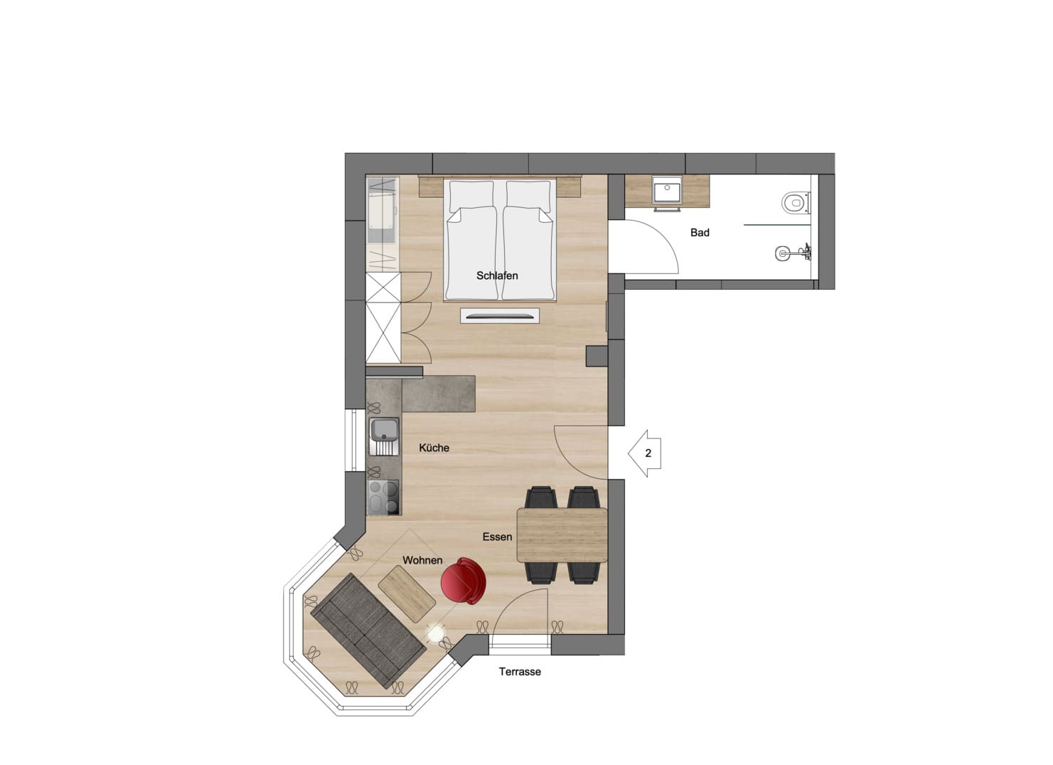 Die Wohnung ist vom DTV mit 5 Sternen bei einer Belegung mit zwei Personen klassifiziert worden.