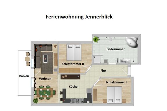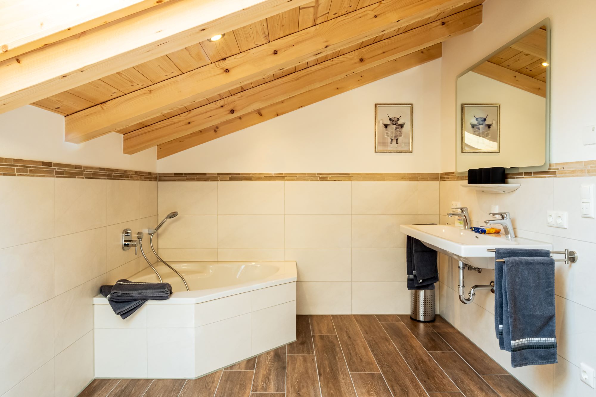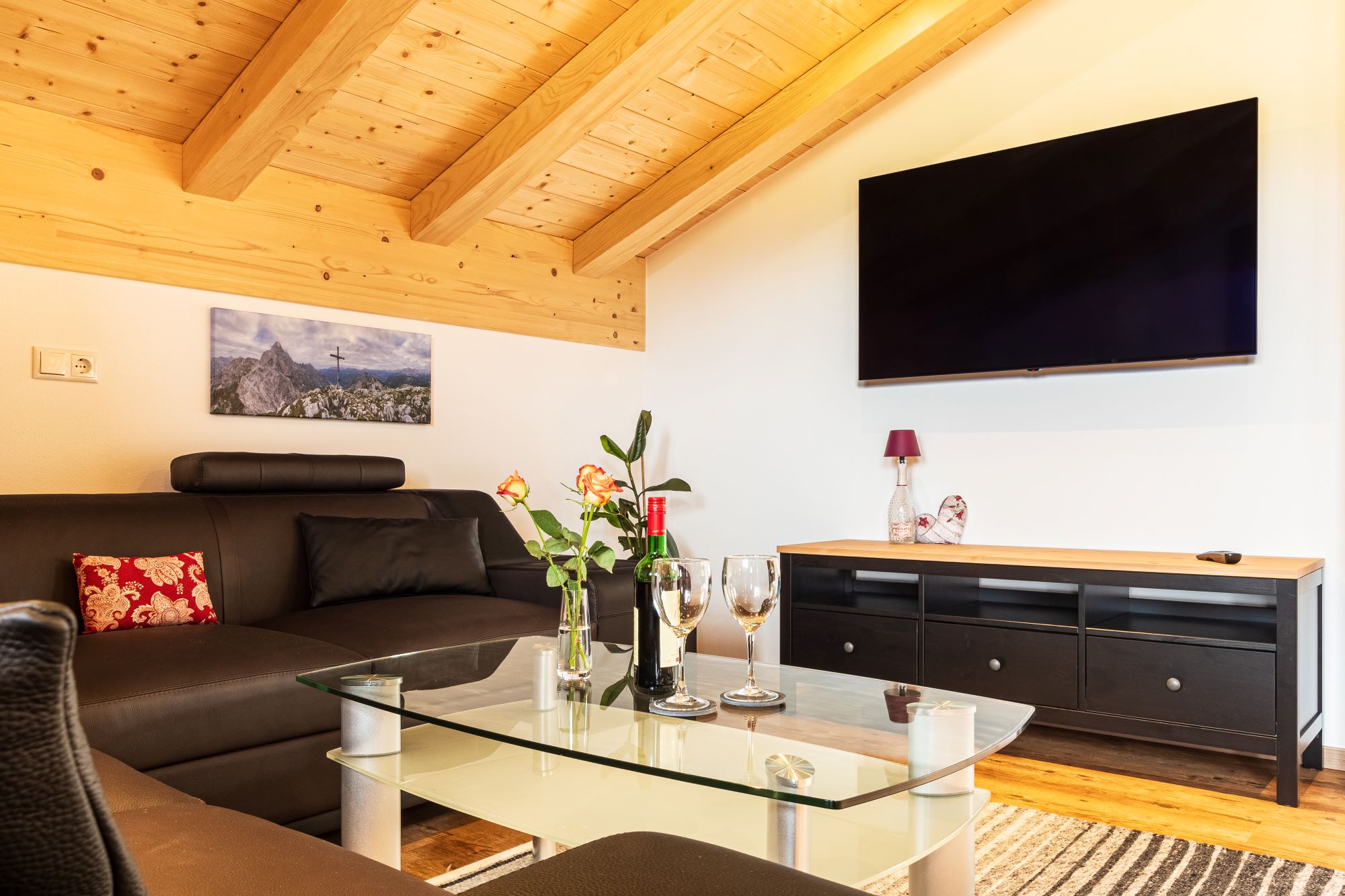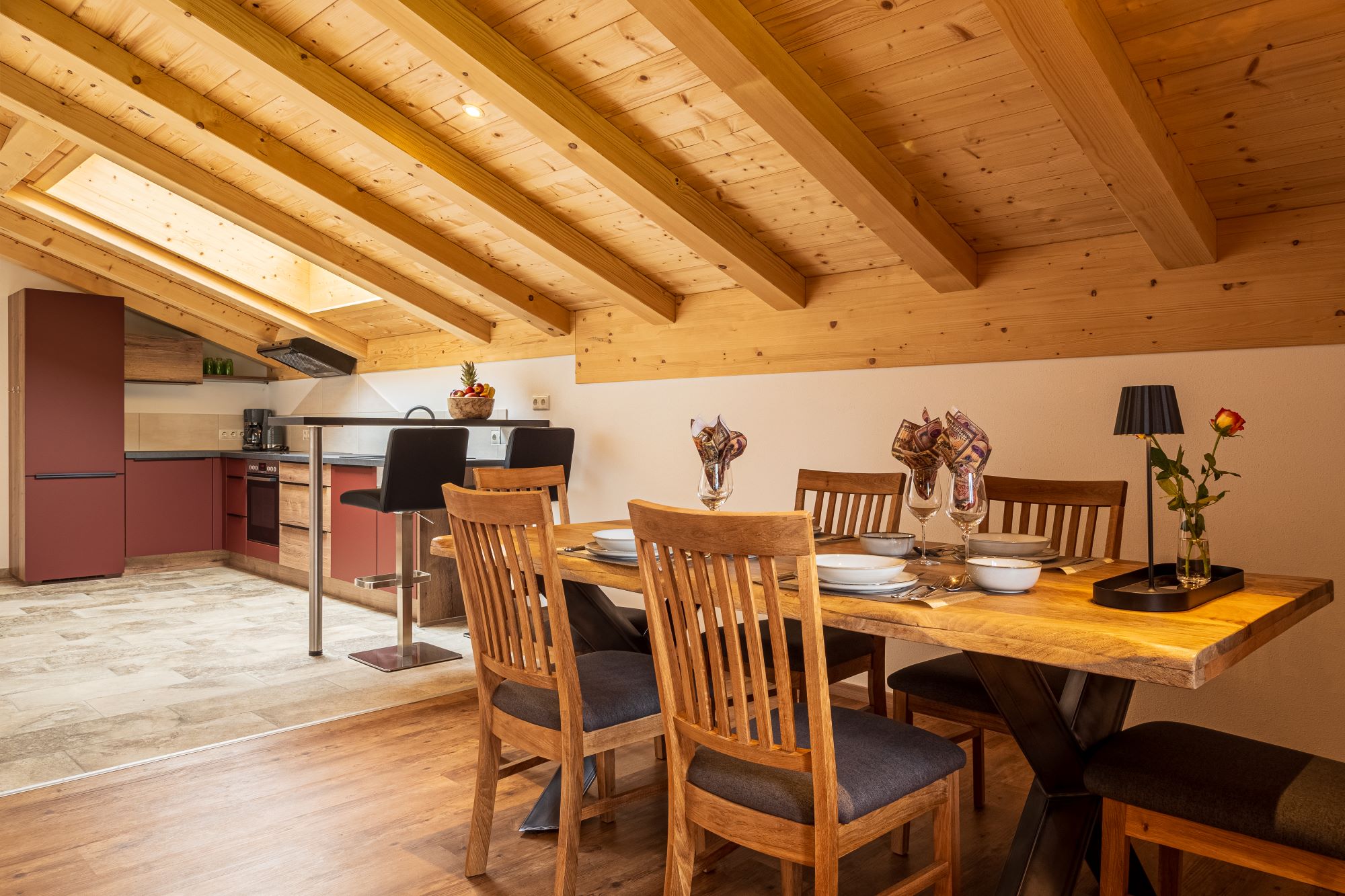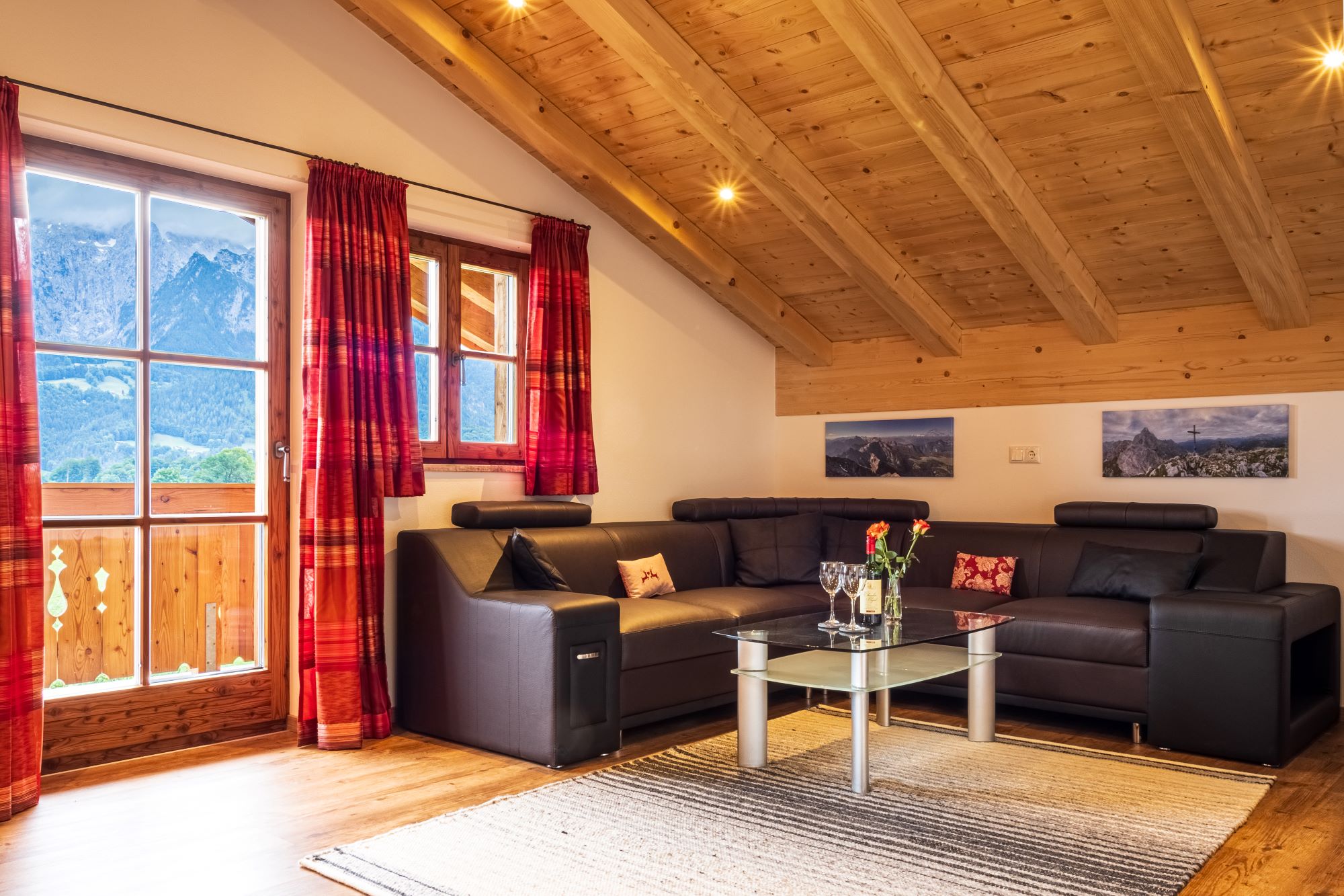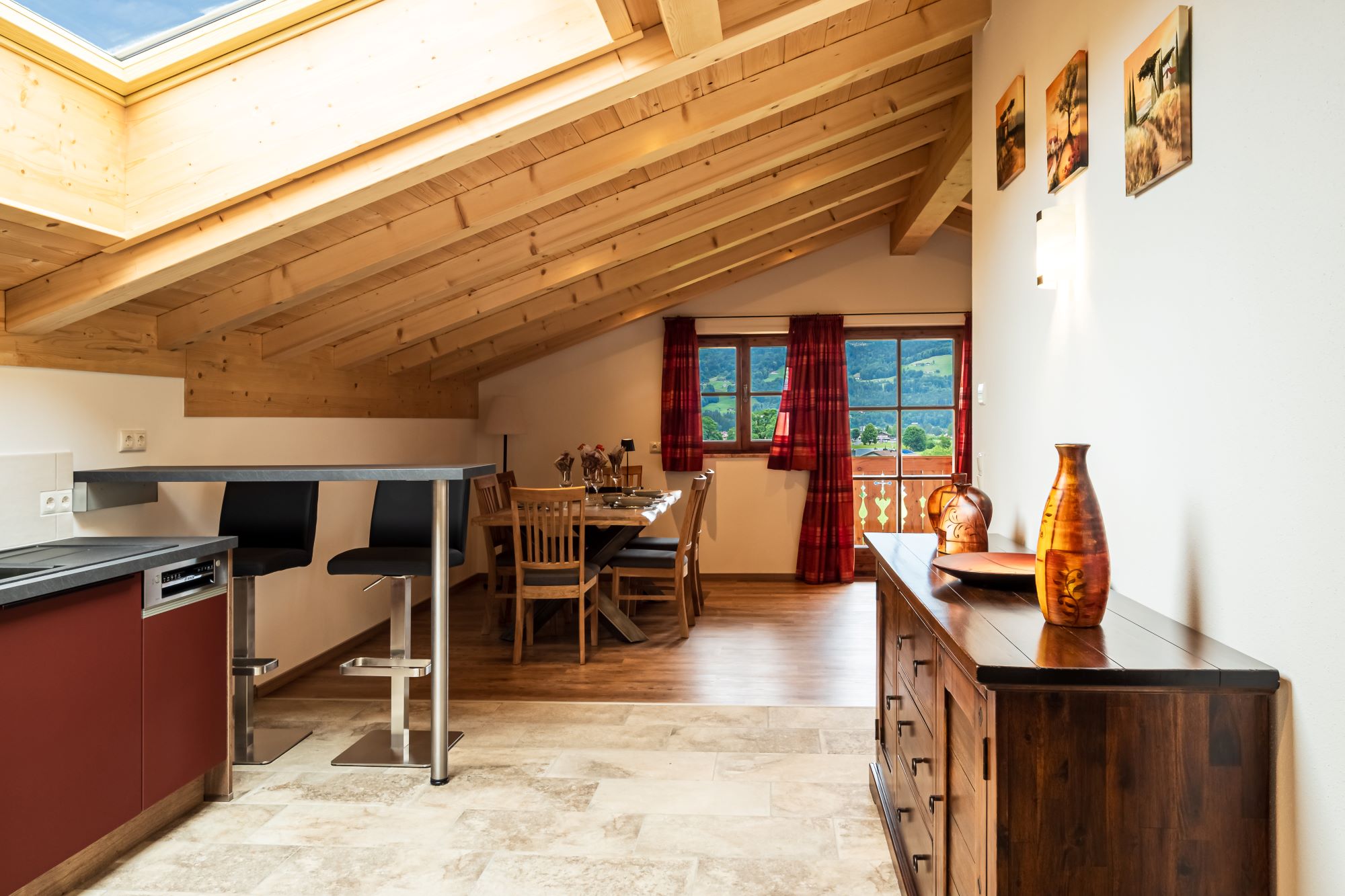 Unsere Dachgeschoßwohnung Jennerblick verbindet moderne Elemente mit ländlichen Akzenten und bietet auf 85 qm Platz für