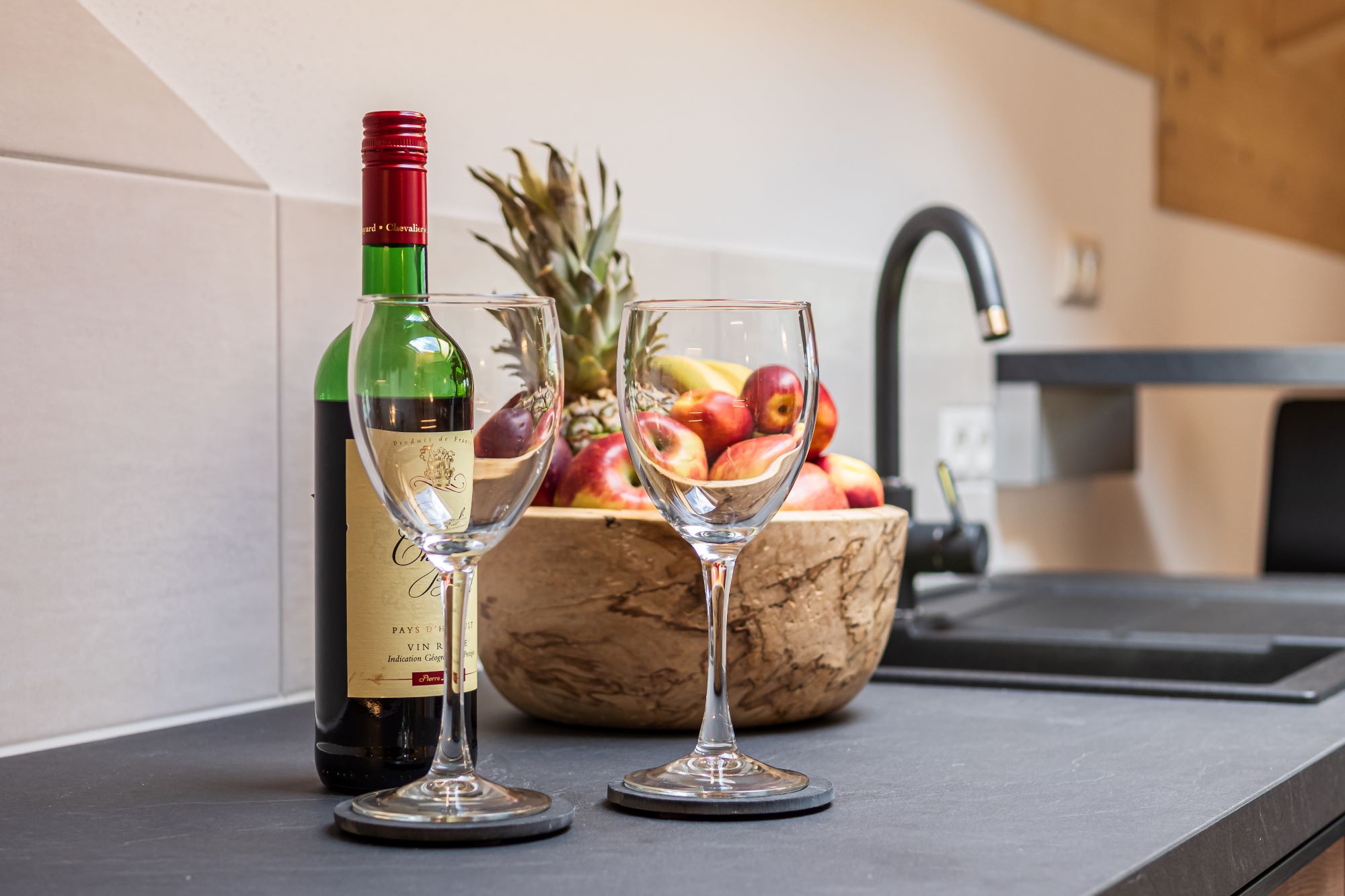 1-4 Personen. Sie ist ausgestattet mit 2 separaten Schlafzimmern, einem großzügigen Wohnraum mit vollausgestatteter Küche, Essbereich, gemütlicher Sitzecke mit Smart-TV, einem Badezimmer mit Dusche, Badewanne, WC, sowie einem Balkon mit herrlichem Bergblick.