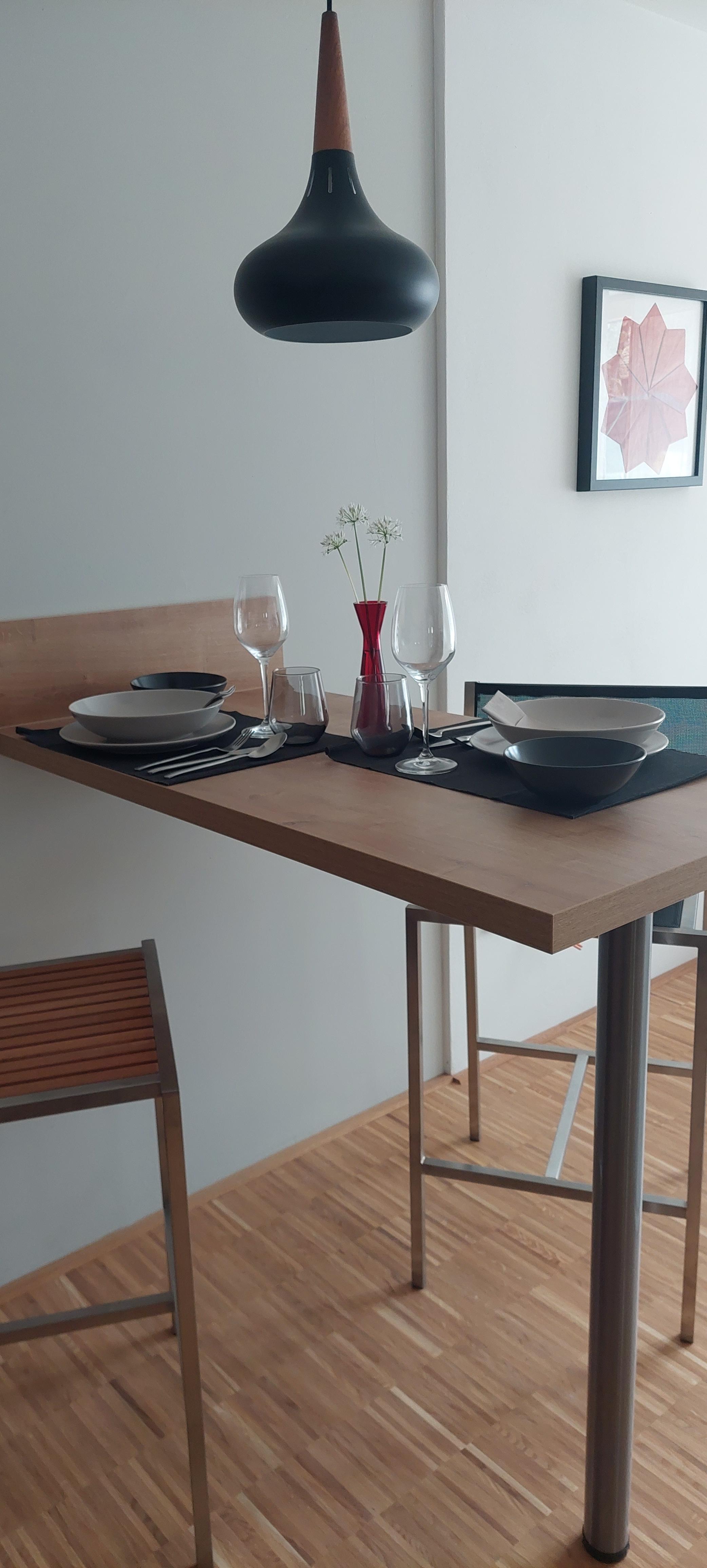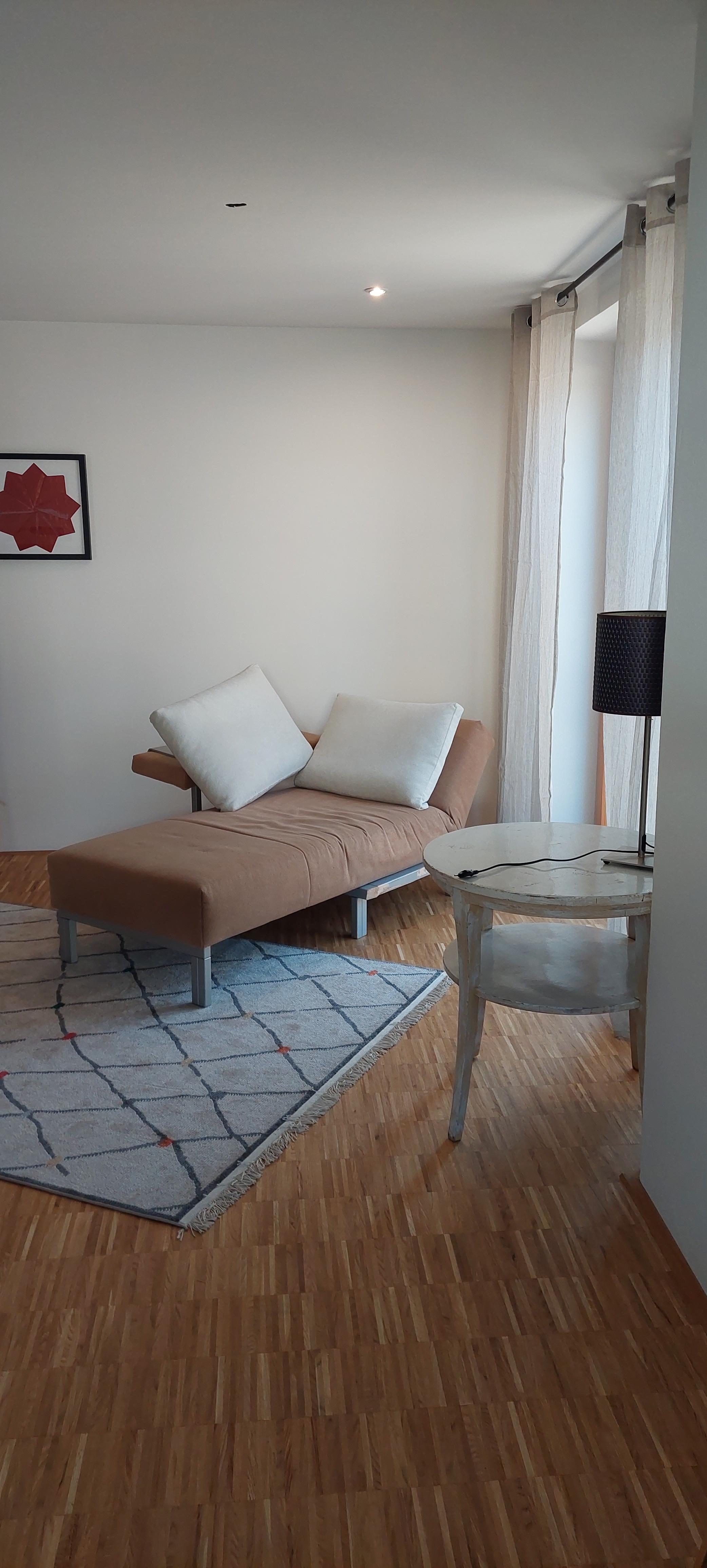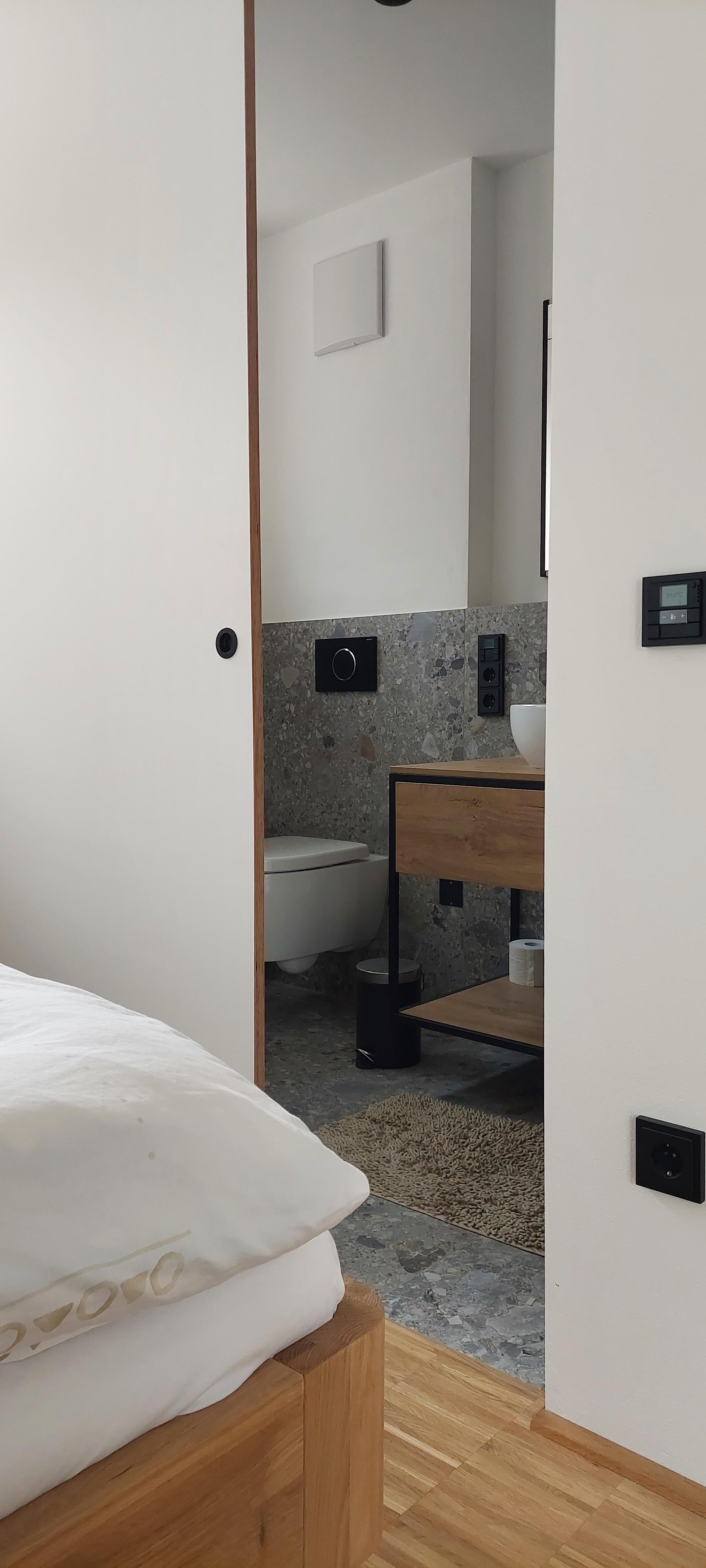 Unser 1 Zimmer-Appartement mit offenem Wohn- und Schlafraum (140 cm Bett) bietet Platz für 1-2 Personen. Die hochwertige Küchenausstattung (u.a. Induktionskochfeld, Geschirrspüler und Bora-Abzug), sowie die Ausstattung des Bades (Spülautomatik-Sensor und Regendusche) lassen keine Wünsche offen. Das Wohnambiente mit Sitztheke und Sofaliege, sowie ein kleiner Terrassenbereich laden zum Verweilen ein. Gerne kann auch unser großzügiger Obstgarten mit Blick auf die umliegenden Berge zum Entspannen genutzt werden.
