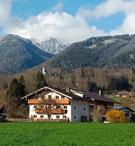 Es erwarten Sie Beton und Holz mit viel Glas im modernen Ambiente. Das vordere Haupthaus von 1851, erbaut nach dem „Schrofensturz“, zählt zu den älteren Bauernhäusern in Brannenburg.