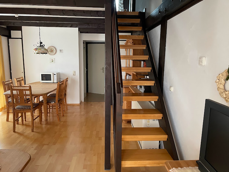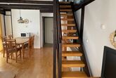 Die Wohnung ist 50 qm groß und auf zwei Etagen. Im Erdgeschoss befindet sich der Wohnbereich und die Küche. Im Obergeschoss dann die beiden Schlafzimmer, die jeweils mit einem bequemen Doppelbett ausgestattet sind sowie das Badezimmer mit Dusche und WC. Für eine fünfte oder sechste Person gibt es im Wohnbereich eine Ausziehcouch als Schlafmöglichkeit.