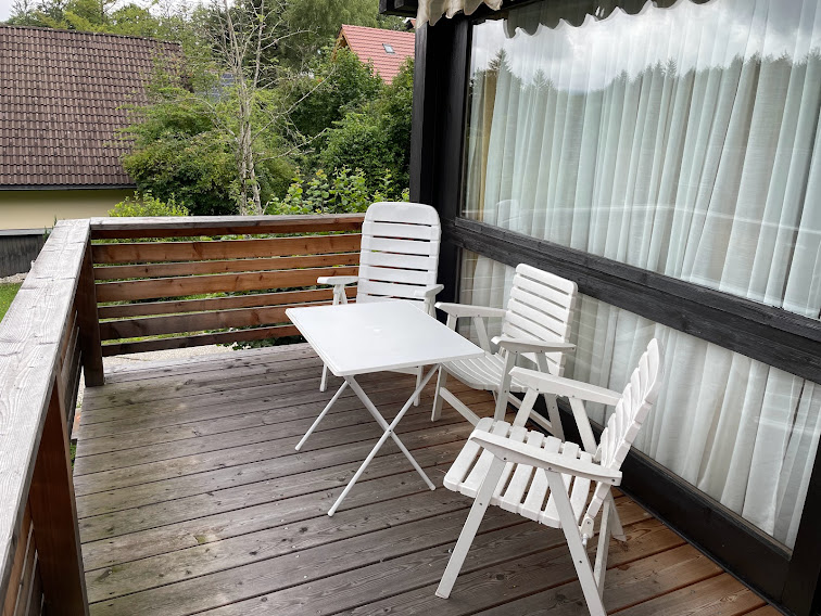 Vom Balkon kann man die Ruhe und den Blick in die Natur genießen.