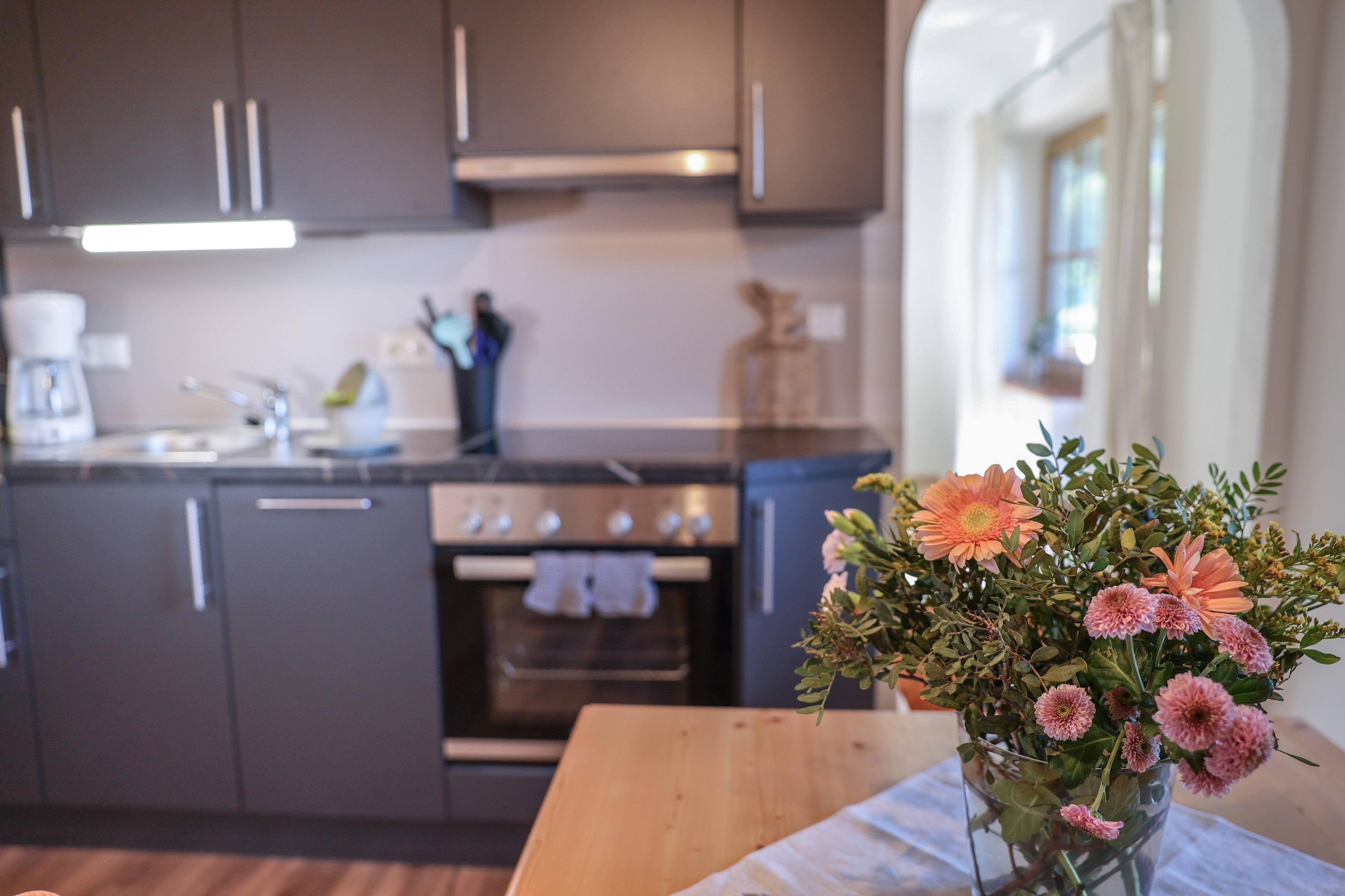 Unsere Küchen sind voll ausgestattet mit 4 Herdplatten, Dunstabzugshaube, Backofen, Spülmaschine