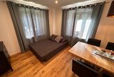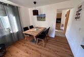 Der großzügige Wohnraum bietet eine ausziehbare Couch (Schlafmöglichkeit für 1 Person), Kabel-Flat-TV, kostenloses WLAN und einen gemütlichen Esstisch, an dem Sie gemeinsame Mahlzeiten genießen können. Die offene Gestaltung schafft eine angenehme Wohnatmosphäre mit einem Durchgang zur Küche. Die vollausgestattete Küche mit Herd/Backofen, Kaffeemaschine, Geschirrspülmaschine, Kühlschrank/Tiefkühlfach, Toaster, Wasserkocher und einer Sitzmöglichkeit zum Wohlfühlen. Die Wohnung verfügt über ein separates Schlafzimmer mit Doppelbett 160 x 200 cm. Das Badezimmer ist modern gestaltet und verfügt über ein WC sowie eine ebenerdige Dusche, die auch für Menschen mit eingeschränkter Mobilität leicht zugänglich ist.