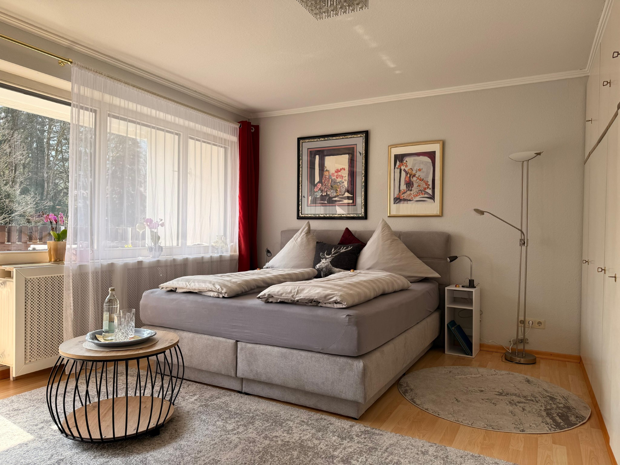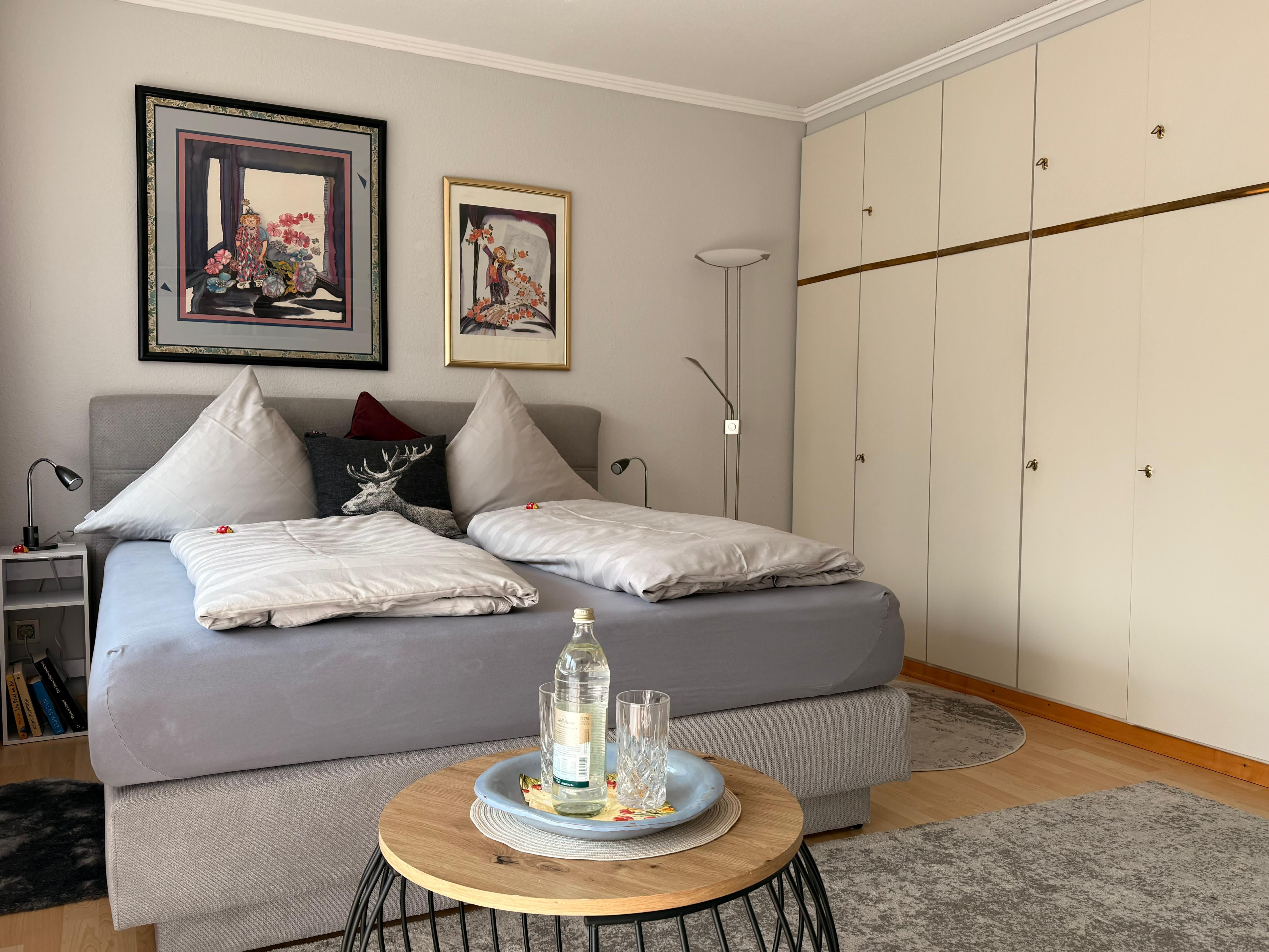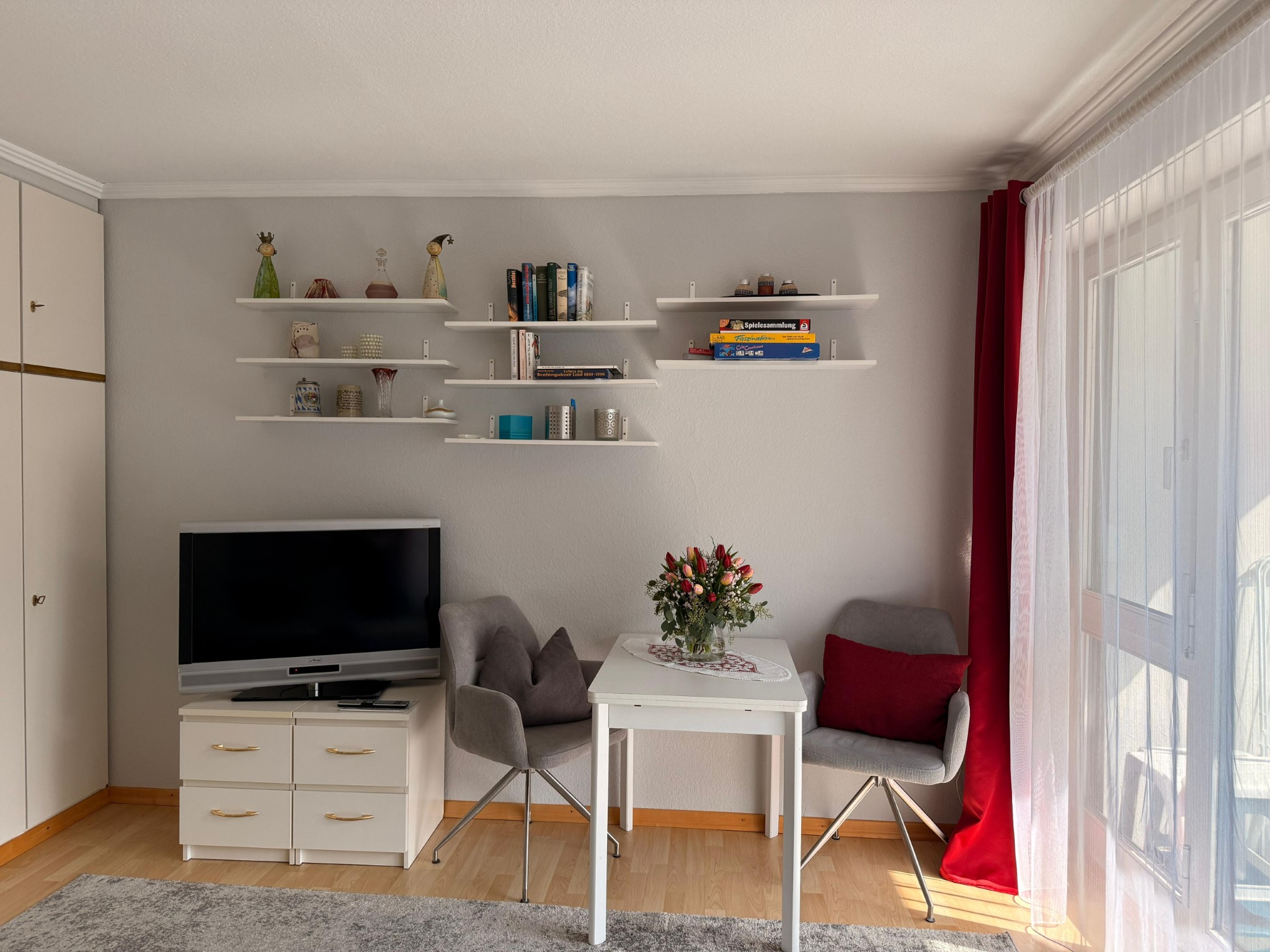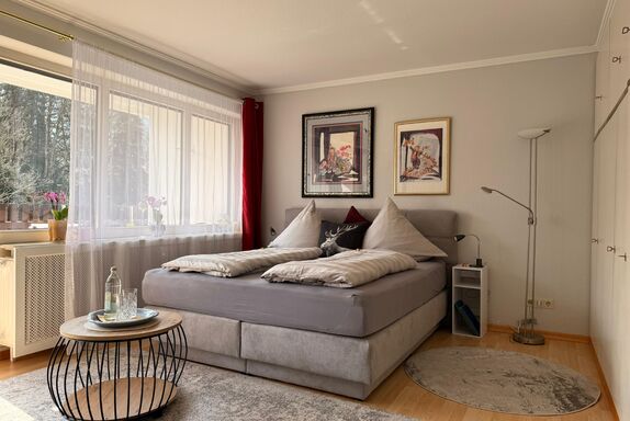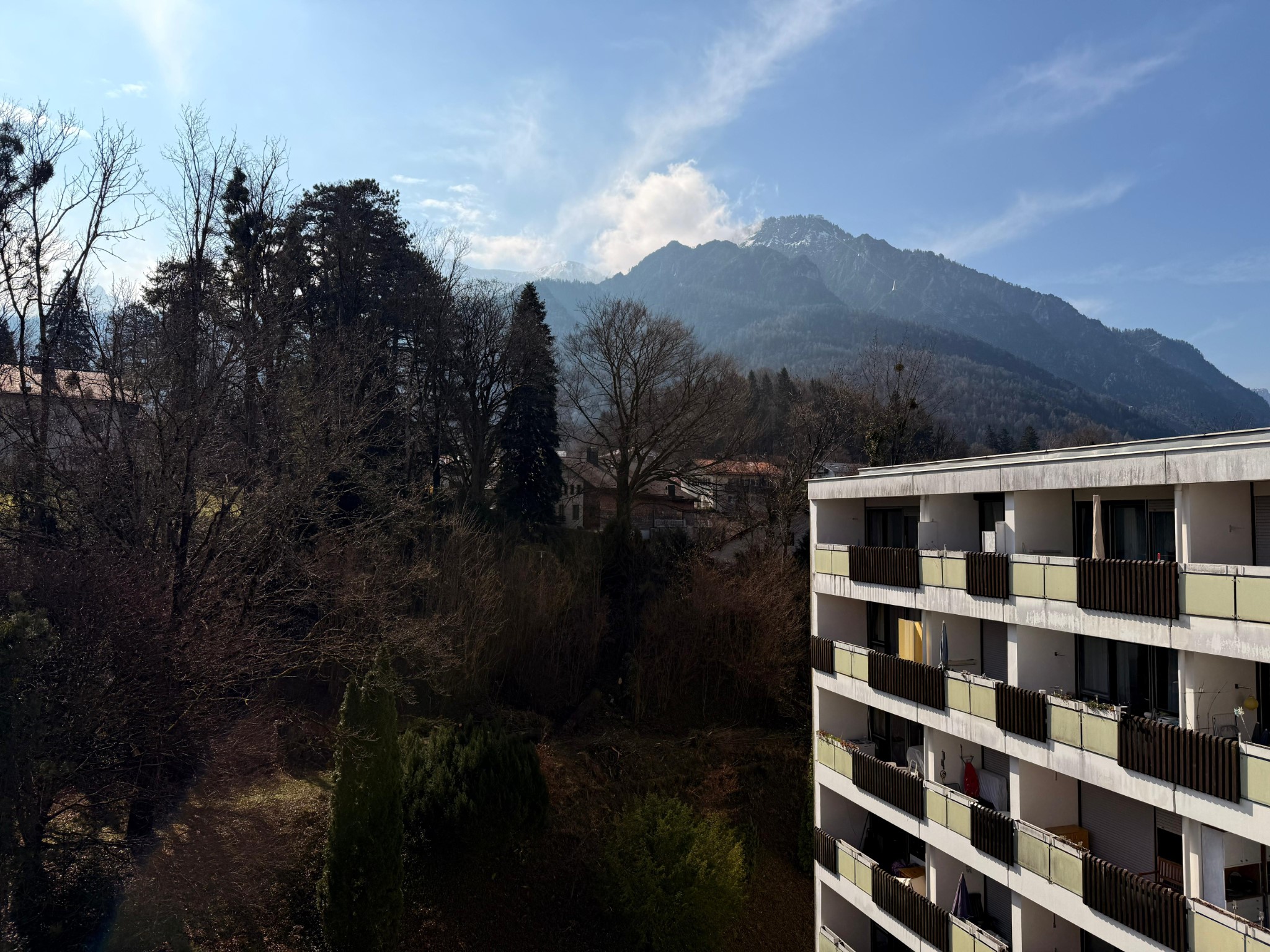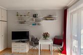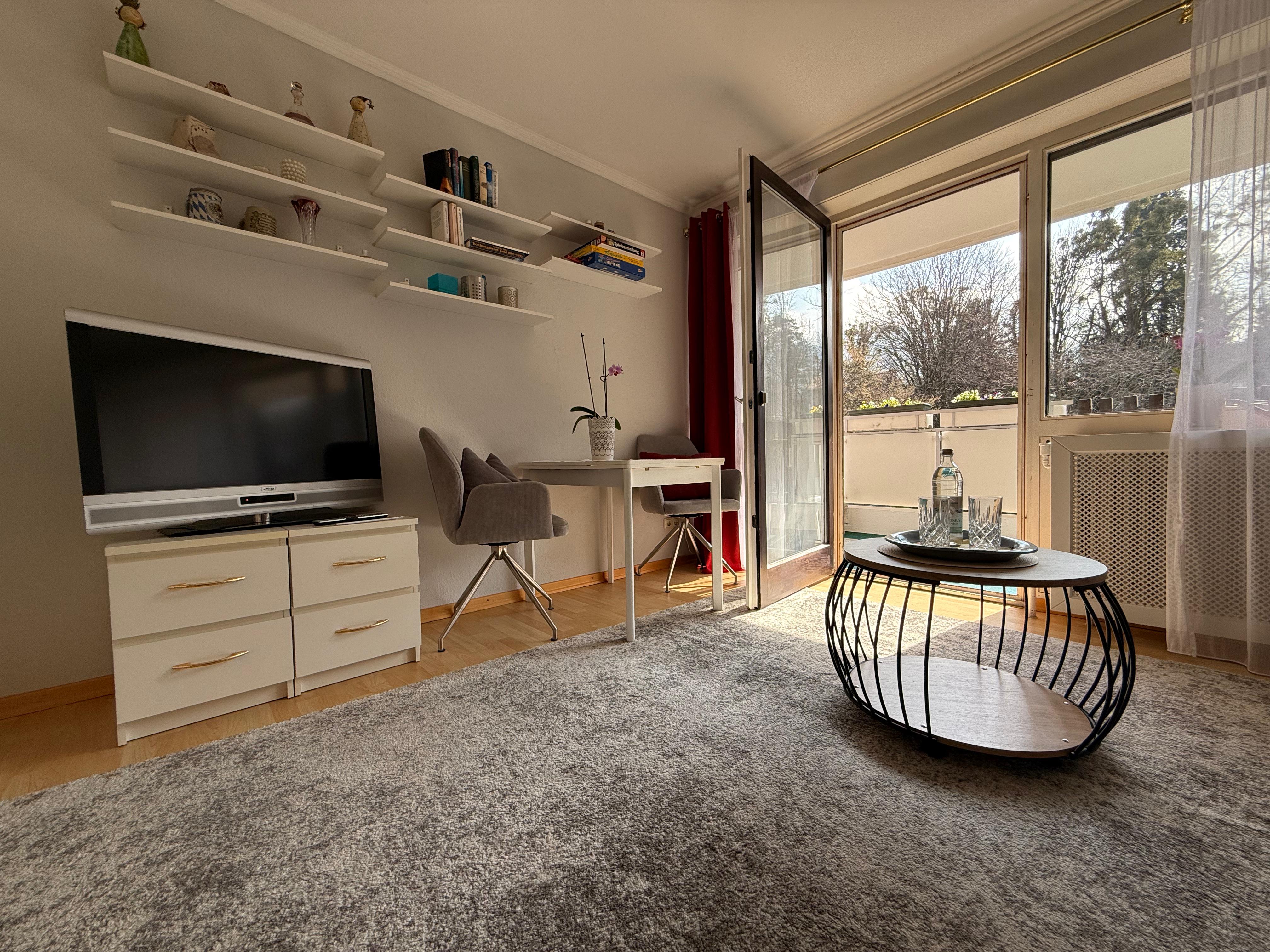 Der kombinierte Wohn-/Schlafraum ist stilvoll eingerichtet. Das hochwertige Schlafsofa mit Topper (1,60x2,00) lässt sich zu einem Doppelbett umbauen und bietet eine ideale Schlafgelegenheit. Ein überdachter Balkon mit herrlichem Blick in die Berge ermöglichen einen erholsamen Urlaub in ruhiger und dennoch idealer Stadtlage! Die Küche ist möbliert und vollständig ausgestattet. Das innenliegende Bad verfügt über eine Wanne. Zur Wohnung gehört ein Tiefgaragenstellplatz. Ein allgemeinzugänglicher Fahrradkeller steht den Bewohnern des Hauses zu Verfügung. Eine Waschmaschine ist in der Wohnung enthalten, weitere Wasch- und Trockengelegenheit befinden sich auf gleicher Ebene.