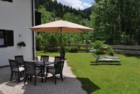 Alle Ferienwohnungen haben Südbalkone / Terrasse und die Ferienwohnungen im Obergeschoß auch Gartenmitbenutzung, der Garten ist groß und verfügt über 2 Sitzgruppen - für jede Wohnung eine.