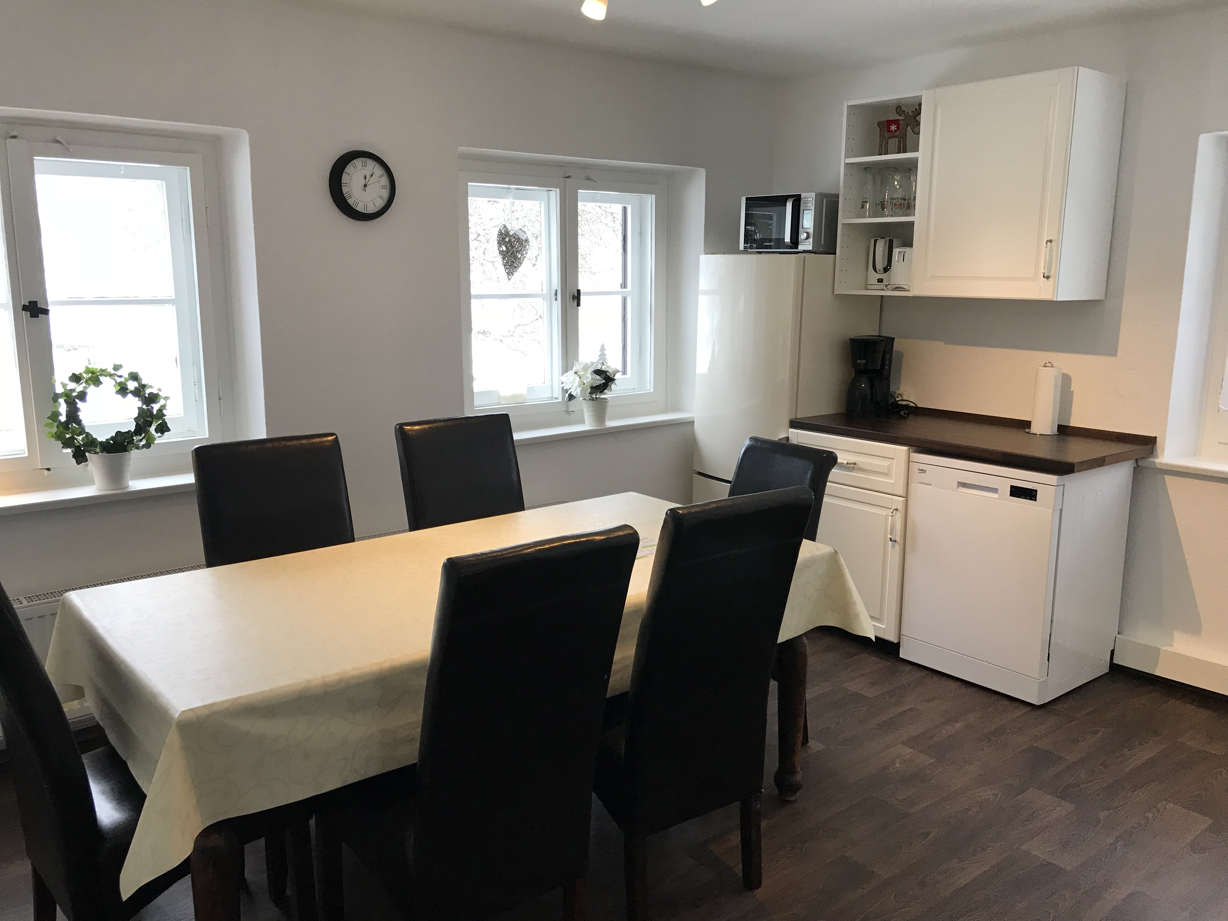 Die Wohnung liegt in einem Zweifamilienhaus im 1. Obergeschoss. Im Erdgeschoss befindet sich ebenfalls eine Ferienwohnung. Beide Wohnungen haben Zugang zum Garten mit eigenen Sitzecken, Gartenmöbeln und Grill im Sommer. Direkt vor dem Haus befinden sie die Privatparkplätze. Die Wohnung ist sehr geräumig, hat 3 Schlafzimmer, Flur, Bad mit WC/Dusche, große Wohnküche komplett eingerichtet und ein gemütliches Wohnzimmer mit eingenem Südbalkon mit Blick in die Natur.