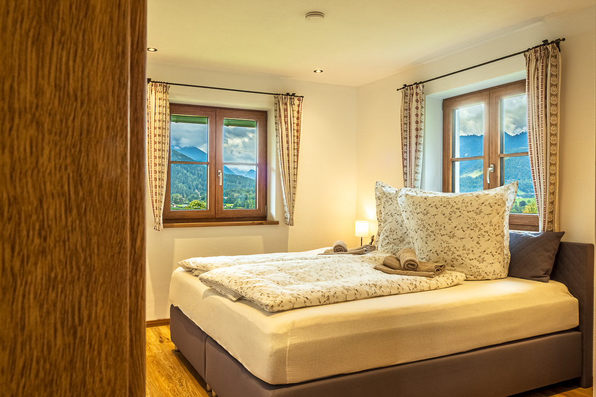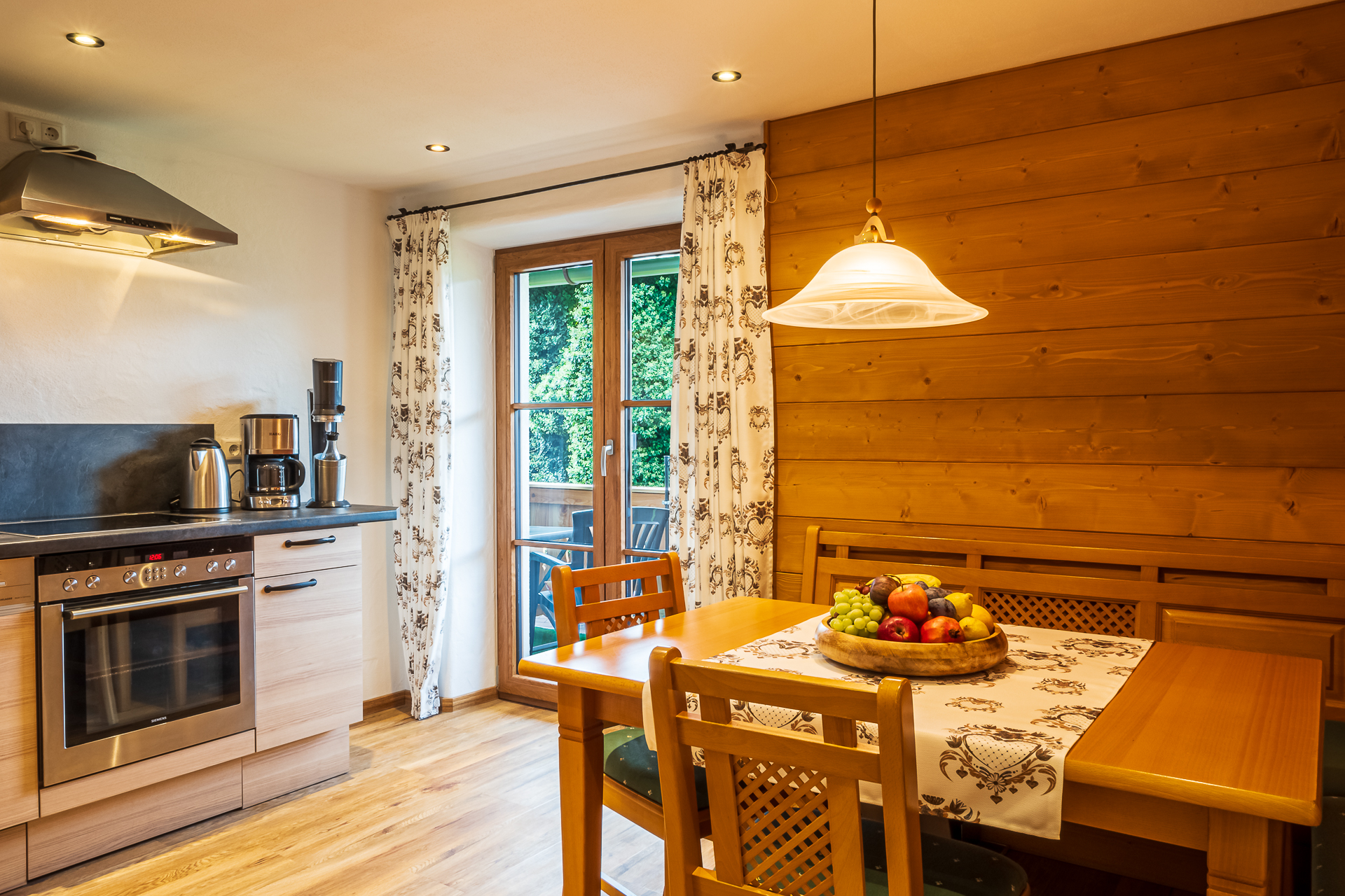 Die im Sommer 2023 renovierte Ferienwohnung Untersberg bietet Platz für bis zu 4 Personen. Neben den beiden Schlafzimmern für jeweils 2 Personen ist die Wohnung mit einer gemütlichen Wohnküche mit Eckbank und einem Badezimmer mit begehbarer Dusche und WC ausgestattet. Auf dem sonnigen Balkon können Sie herrliche Sonnenuntergänge mit Blick auf die Berchtesgadener Berge genießen. Für unsere Gäste stehen kostenloses WLAN, sowie hauseigene Parkplätze zur Verfügung.