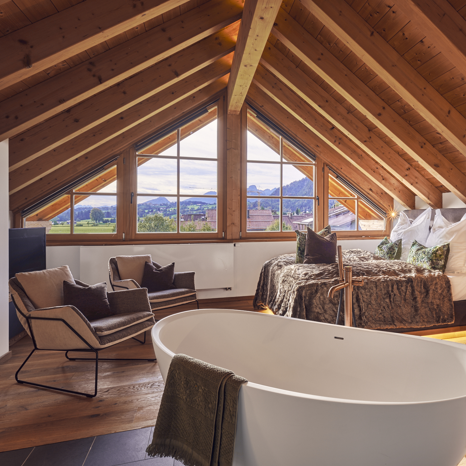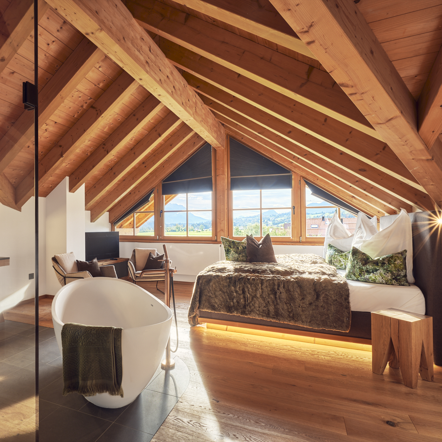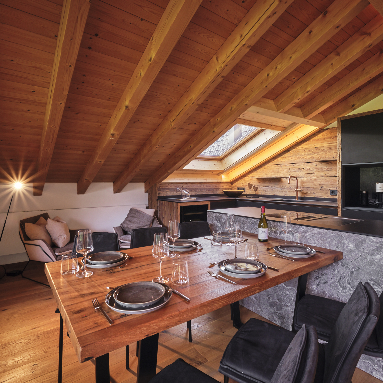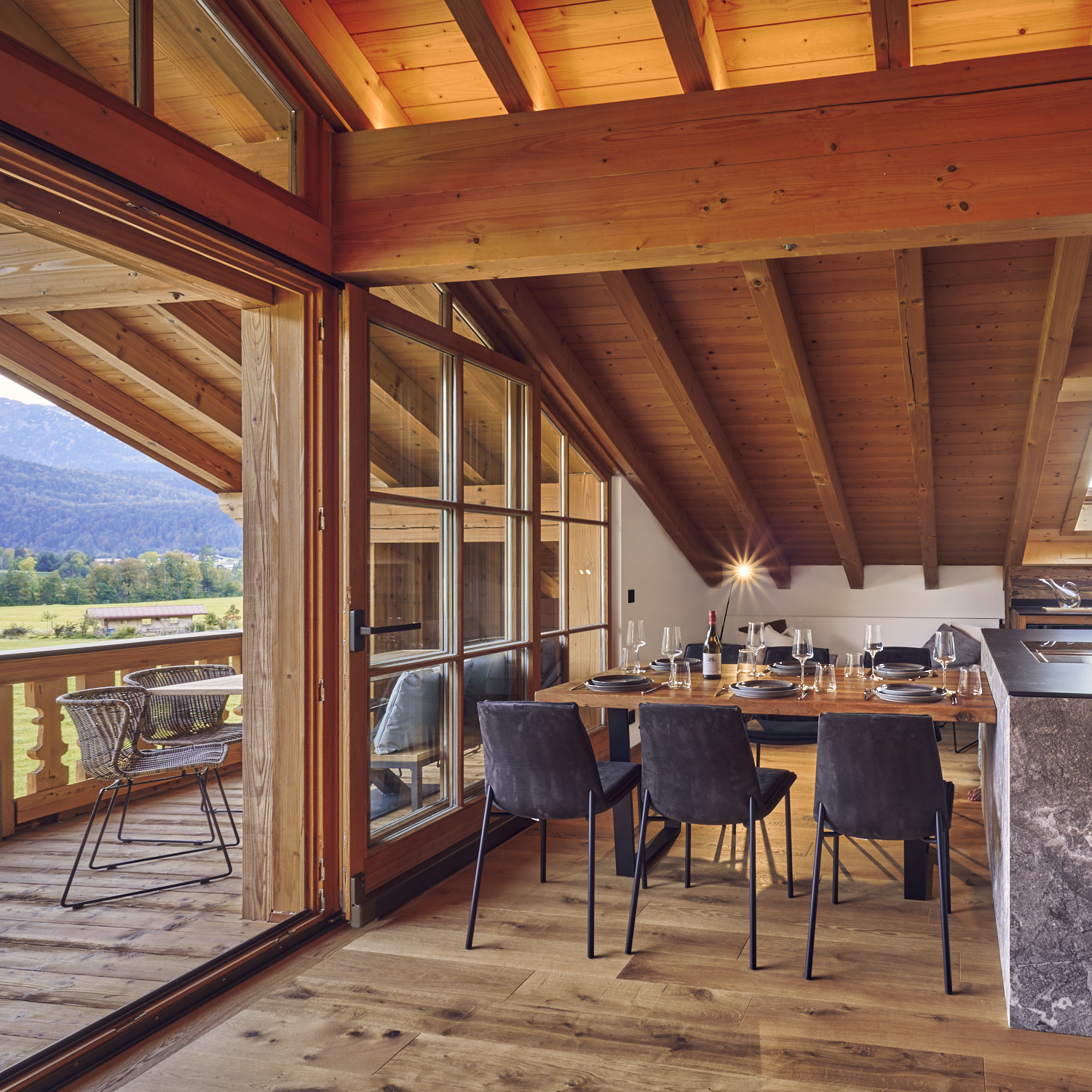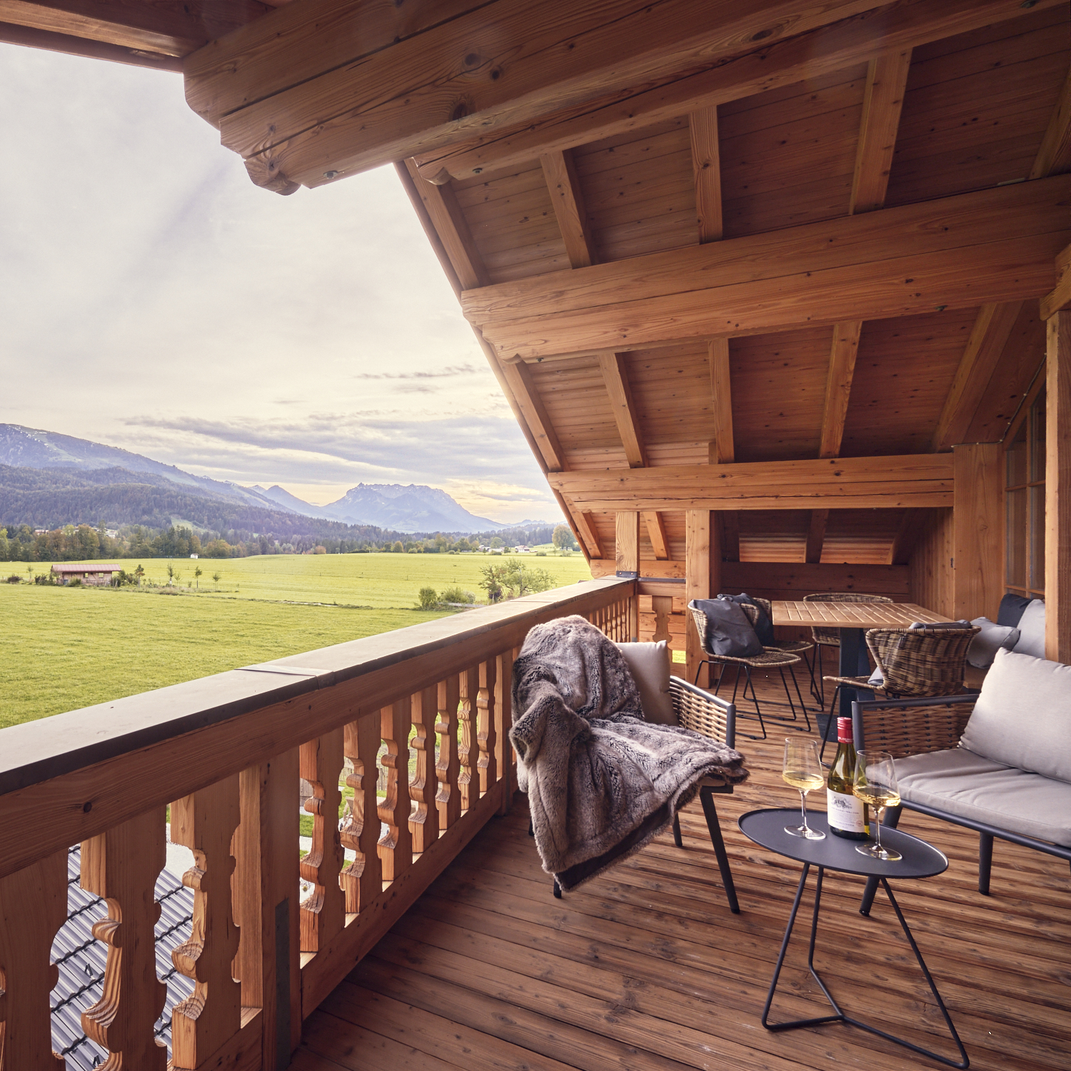 In unsererm alpstyle-heaven, unserem luxuriösesten Apartments wird es an nichts fehlen. Mit 160m2 für bis zu 6 Personen bietet es 3 Schlafzimmer, eins mit Blick auf den Himmel und zwei mit atemberaubendem Blick auf den Zahmen Kaiser. 3 Badezimmer, ein atemberaubender Ausblick von Wohn und Eßbereich über Berge und Wiesen werden von einer erstklassige ausgestatteten Küche inkl. Bora Herdplatte/Grillfläche ergänzt. Der große Kühlschrank inkl. Frischhaltefächer, Tiefkühlfach wird nur vom separaten Weinkühlschrank übertroffen. Bei gutem Wetter findet das Essen geren auf dem Balkon statt und am Abend laden die gemütlichen Liegen (Regen geschützt) zum Fletzen und genießen des Abends auf dem Balkon ein. Mehr geht nicht im Urlaub. Der große Fitnessbereich, komplett neuer Wellenssbereich (inkl. Naturpool) und ein Kinoraum befinden sich zur freien Nutzung unten direkt im gleichen Haus. Hier bleiben keien Wünsche offen.
