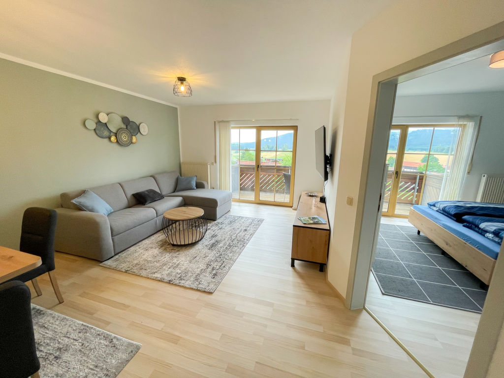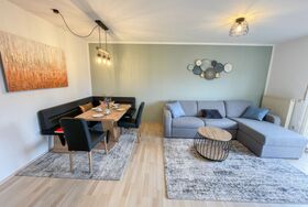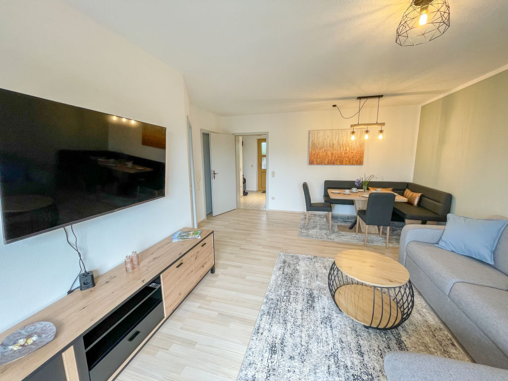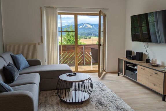 ReMaWe, 2-Zimmer-Wohnung 60 m2 im 1. Stock. Objekt geeignet für 2 Erwachsene + 3 Kinder. Schön und gemütlich eingerichtet: Wohn-/Schlafzimmer mit 1 Diwanbett (140 cm, Länge 190 cm), Essecke und Sat-TV (Flachbildschirm). Ausgang zum Balkon. 1 Zimmer mit 1 x 2 Etagenbetten, 1 Doppelbett. Ausgang zum Balkon. Küche (Backofen, Geschirrspüler, 4 Induktionskochplatten, Toaster, Wasserkocher, elektrische Kaffeemaschine). Dusche/WC. Heizung. Balkon. Balkonmöbel, Abstellkammer. Panoramasicht auf Geißkopf. Zur Verfügung: Waschmaschine. Internet (Wireless LAN, gratis). Garage (1 Auto). Bitte beachten: Nichtraucher-Unterkunft. Eigener Eingang, Rauchmelder.