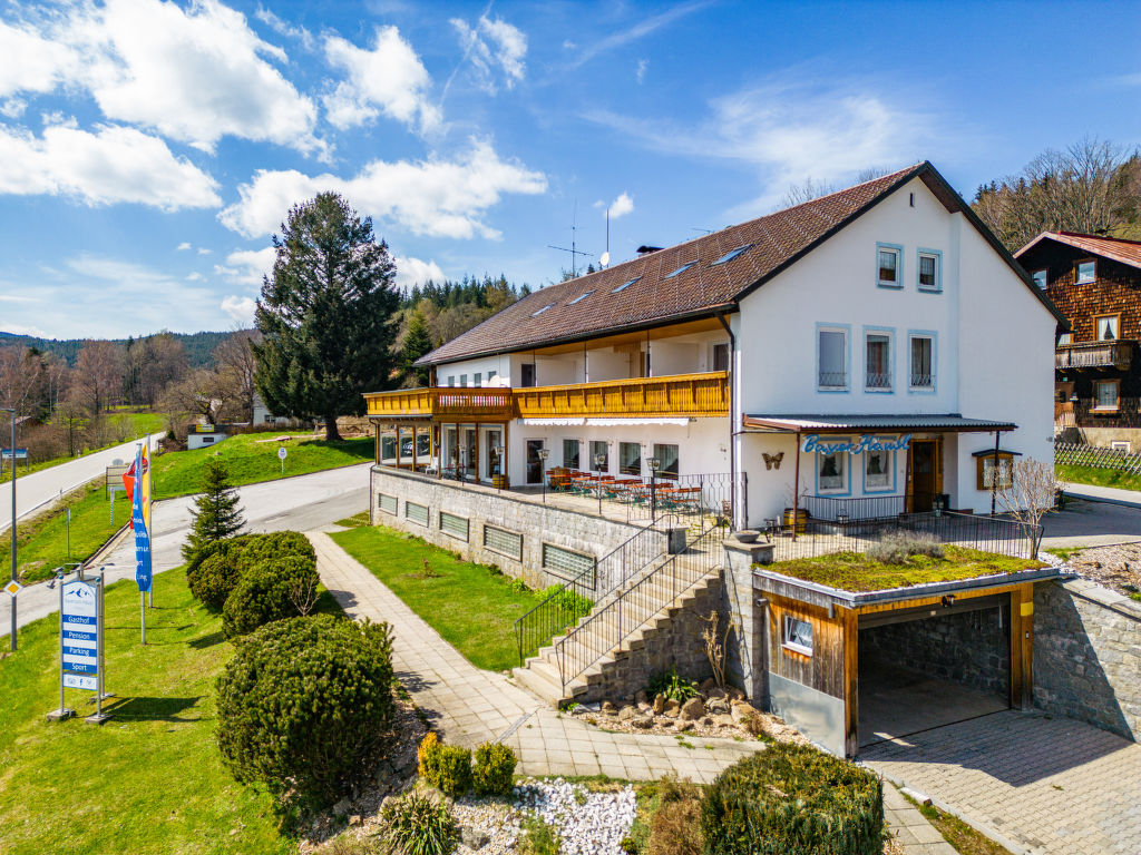 Grosses, komfortables Haus Bayerisch Häusl, auf 3 Stockwerken, Baujahr 1960, renoviert im Jahre 2000. Am Hang. Zur Alleinbenutzung: Tischtennis. Im Hause: Wireless LAN, Einstellraum für Fahrräder, Zentralheizung. Parkplatz (für 14 Autos), Gemeinschaftsgarage. Bushaltestelle Bayerisches Häusl 100 m, Bahnstation Bayerisch Eisenstein 1.6 km. Nahe gelegene Sehenswürdigkeiten: Cross Country Trail 150 m, Železná Ruda 4 km, Bikepark Špičák (CZ) 6 km, Lipno Stausee (CZ) 100 km. Bekannte Skigebiete sind gut erreichbar: Großer Arber 7 km. Wandergebiete: Großer Arber 7 km. Das Haus ist eine ehemalige Pension mit großem Aufenthaltsraum, Gastroküche, Bierzapfanlage (€ 50), Kühlraum, Tiefgarage und großer, teilweise überdachter Terrasse.