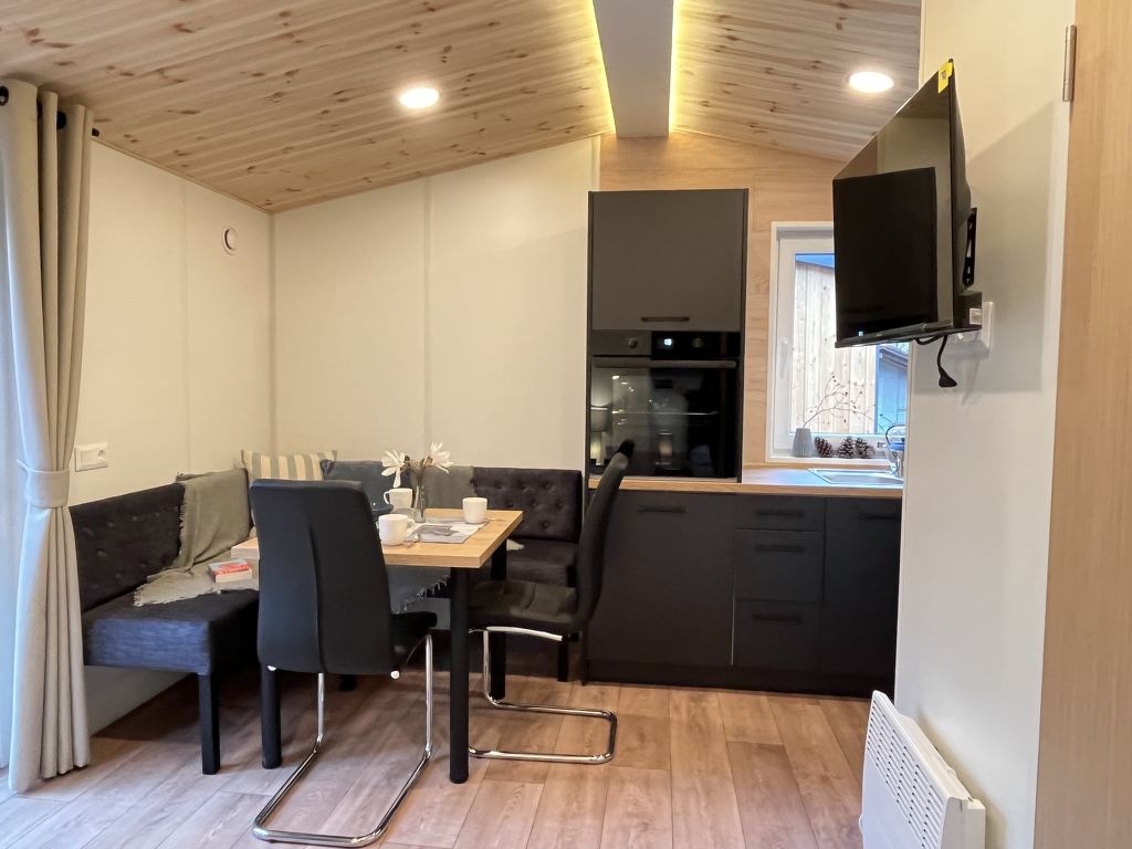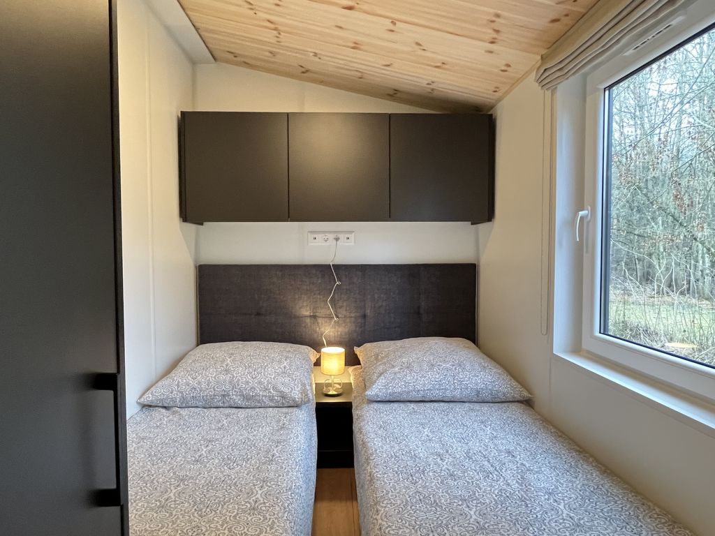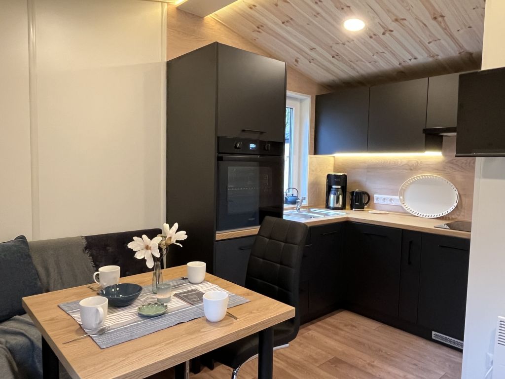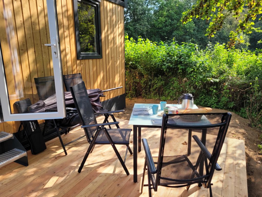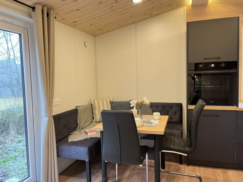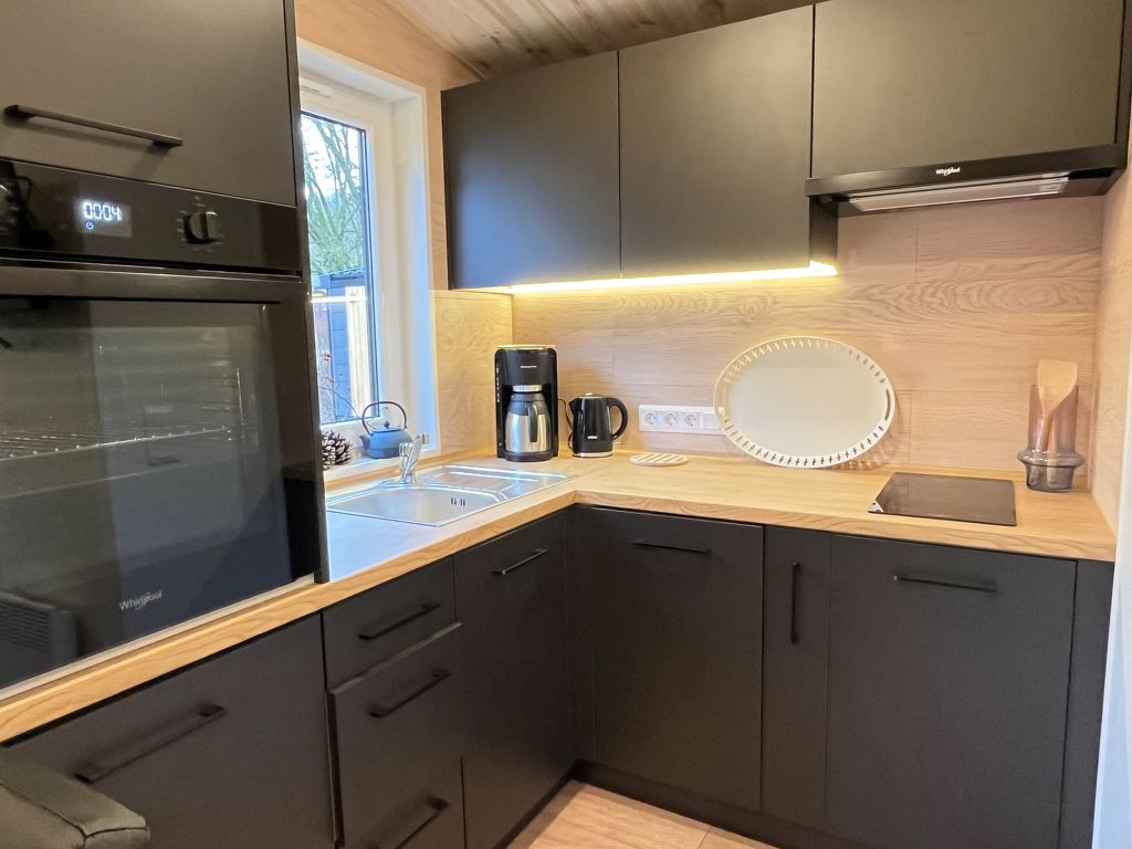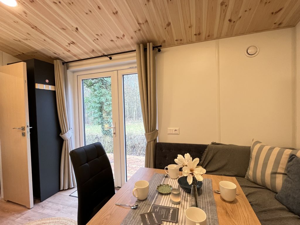 Tiny Haus Soul & Forest, 3-Zimmer-Mobilheim 29 m2. Gemütlich eingerichtet: Wohn-/Esszimmer mit Sat-TV (Flachbildschirm). Ausgang zur Terrasse. 1 Zimmer mit 1 Doppelbett (140 cm, Länge 200 cm). 1 Zimmer mit 2 Betten (80 cm, Länge 200 cm). Kochnische (Backofen, Geschirrspüler, 2 Induktionskochplatten, Wasserkocher, elektrische Kaffeemaschine). Dusche/WC. Terrasse. Terrassenmöbel, Elektrogrill (mobil). Zur Verfügung: Internet (WLAN, gratis). Bitte beachten: Nichtraucher-Unterkunft. Rauchmelder, Feuerlöscher. Das Haus befindet sich direkt neben DE8834.200.4.