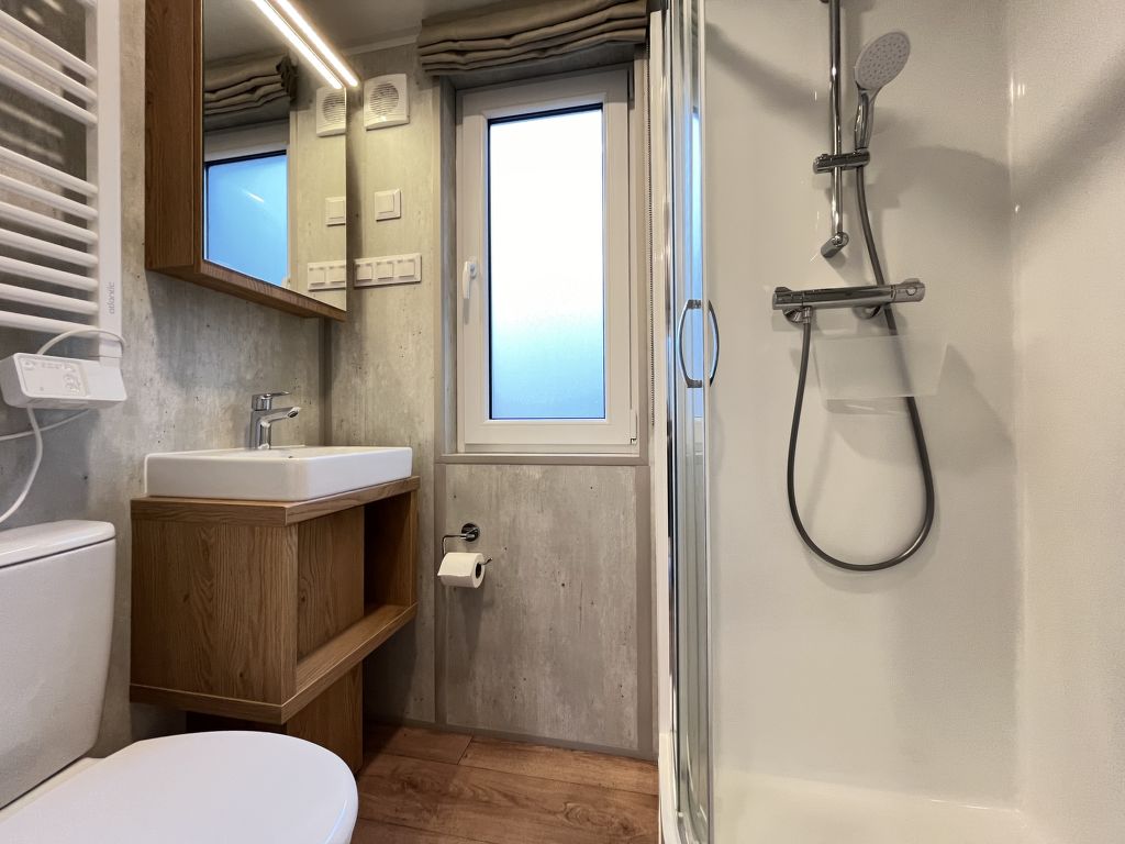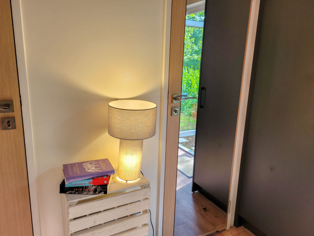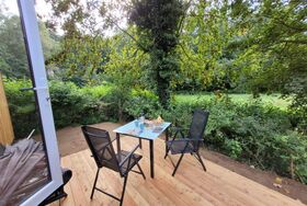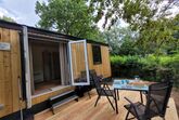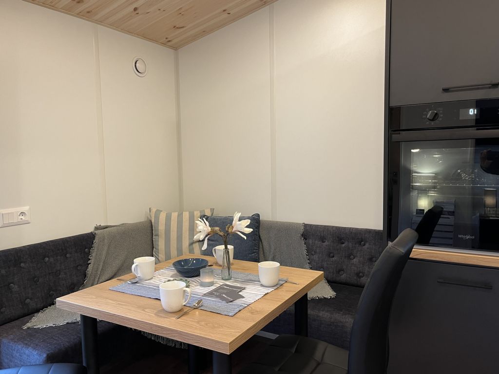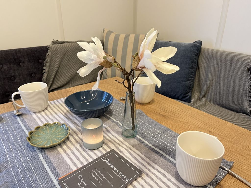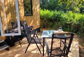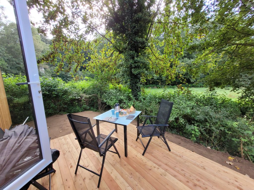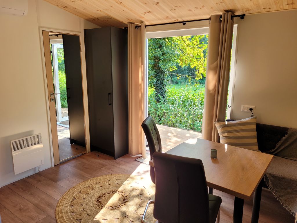 Tiny Haus Soul & Forest, 3-Zimmer-Mobilheim 29 m2. Gemütlich eingerichtet: Wohn-/Esszimmer mit Sat-TV (Flachbildschirm). Ausgang zur Terrasse. 1 Zimmer mit 1 Doppelbett (140 cm, Länge 200 cm). 1 Zimmer mit 2 Betten (80 cm, Länge 200 cm). Kochnische (Backofen, Geschirrspüler, 2 Induktionskochplatten, Wasserkocher, elektrische Kaffeemaschine). Dusche/WC. Terrasse. Terrassenmöbel, Elektrogrill (mobil). Zur Verfügung: Internet (WLAN, gratis). Bitte beachten: Nichtraucher-Unterkunft. Rauchmelder, Feuerlöscher. Das Haus befindet sich direkt neben DE8834.200.4.