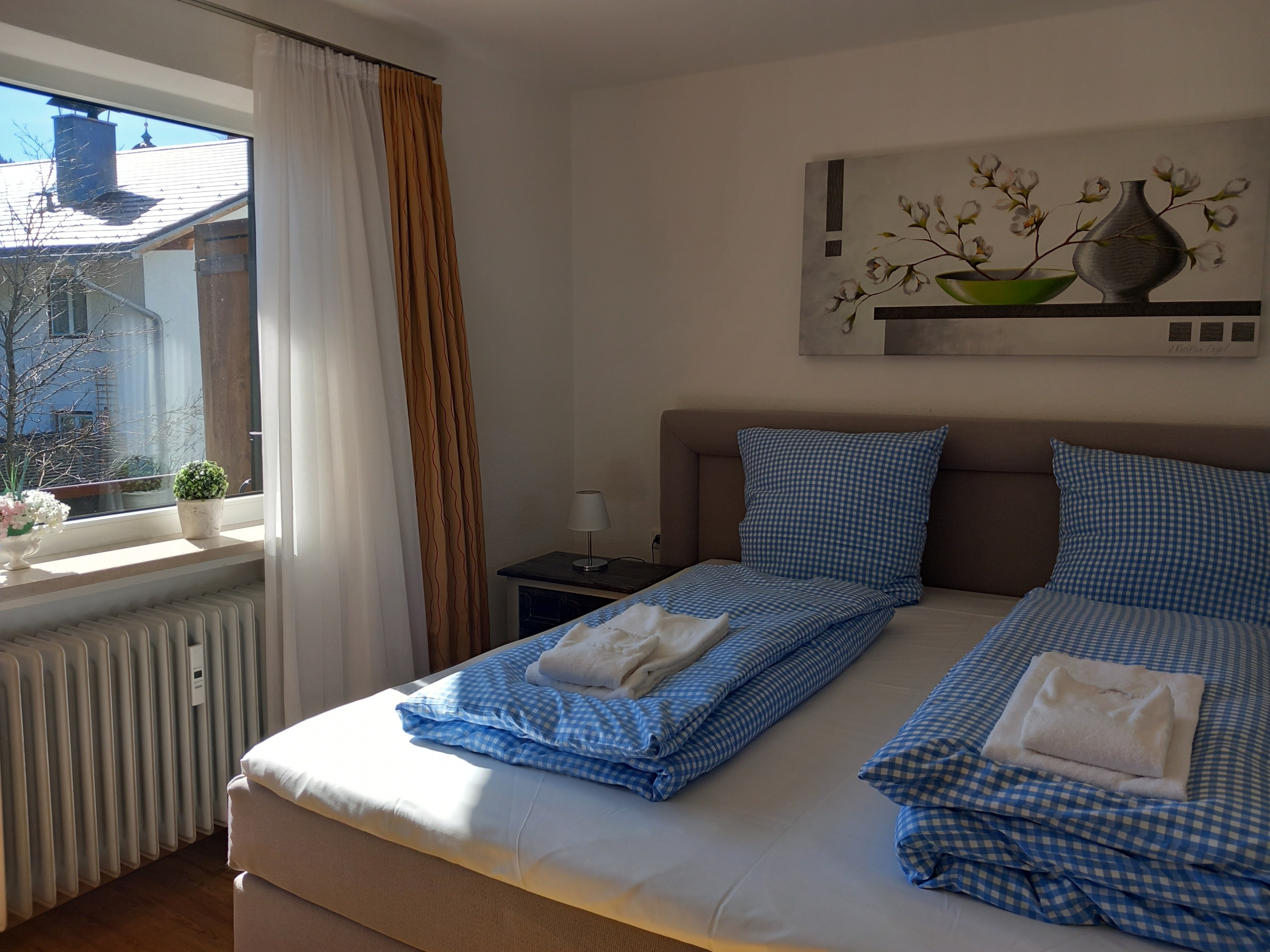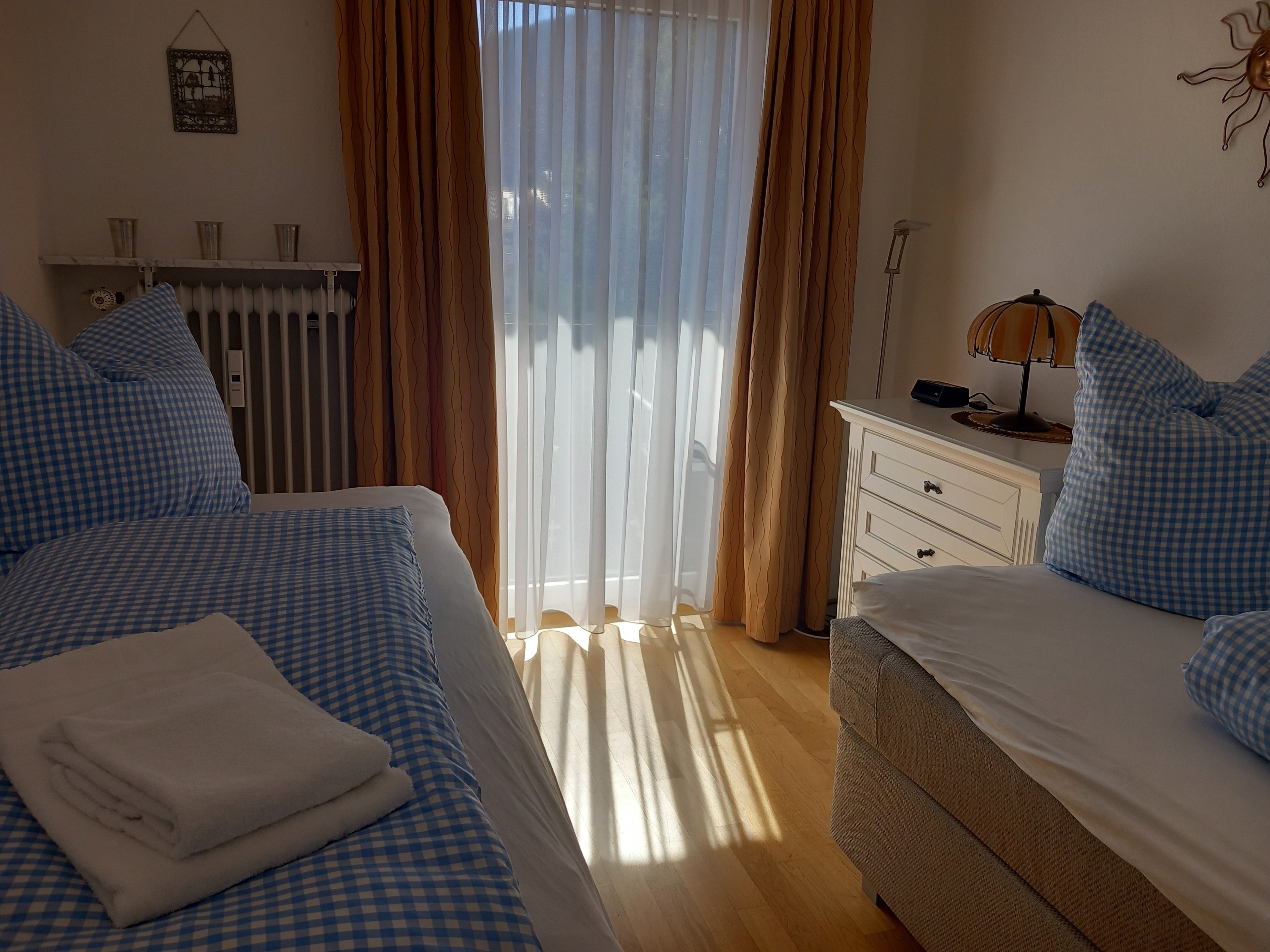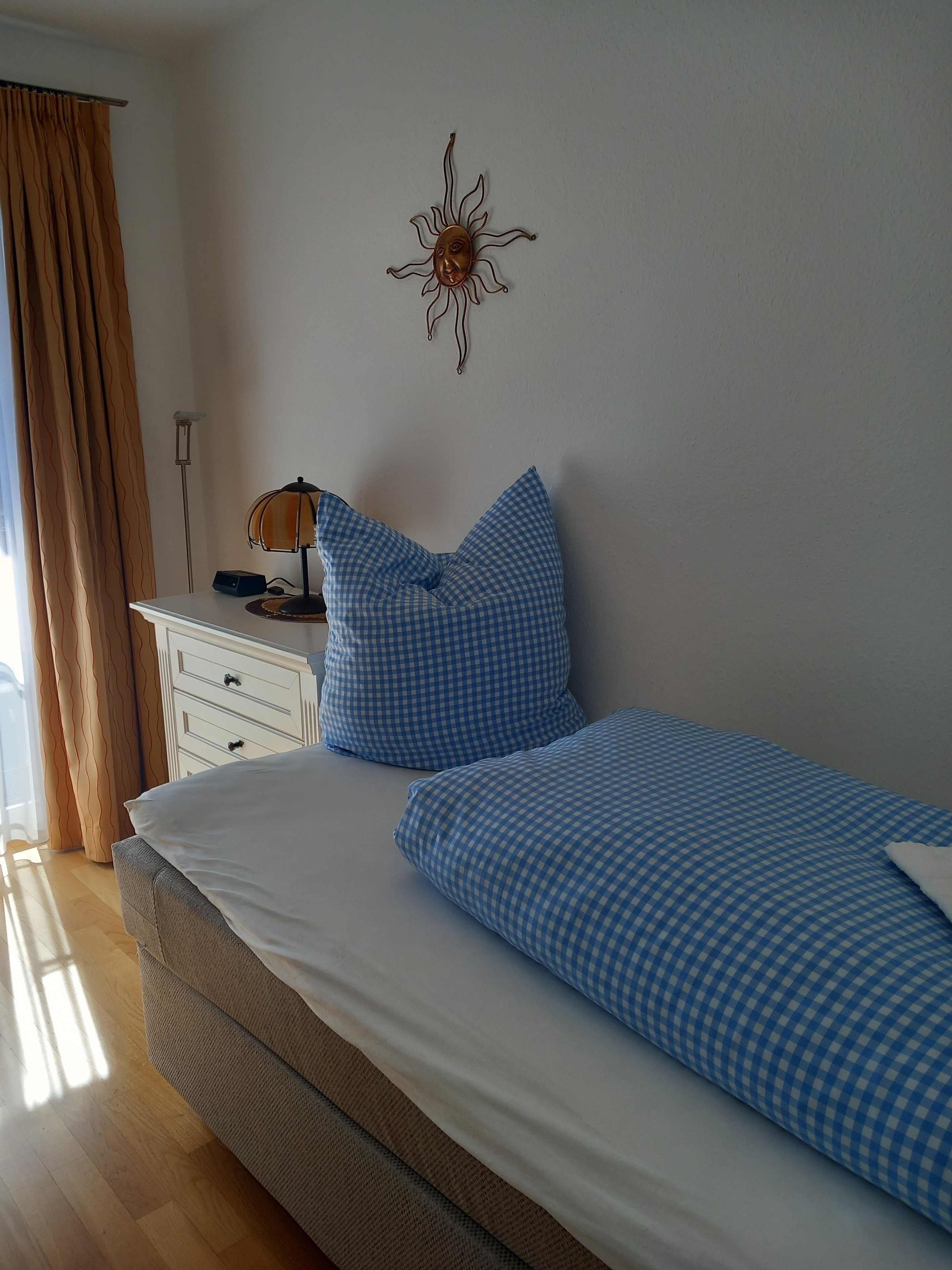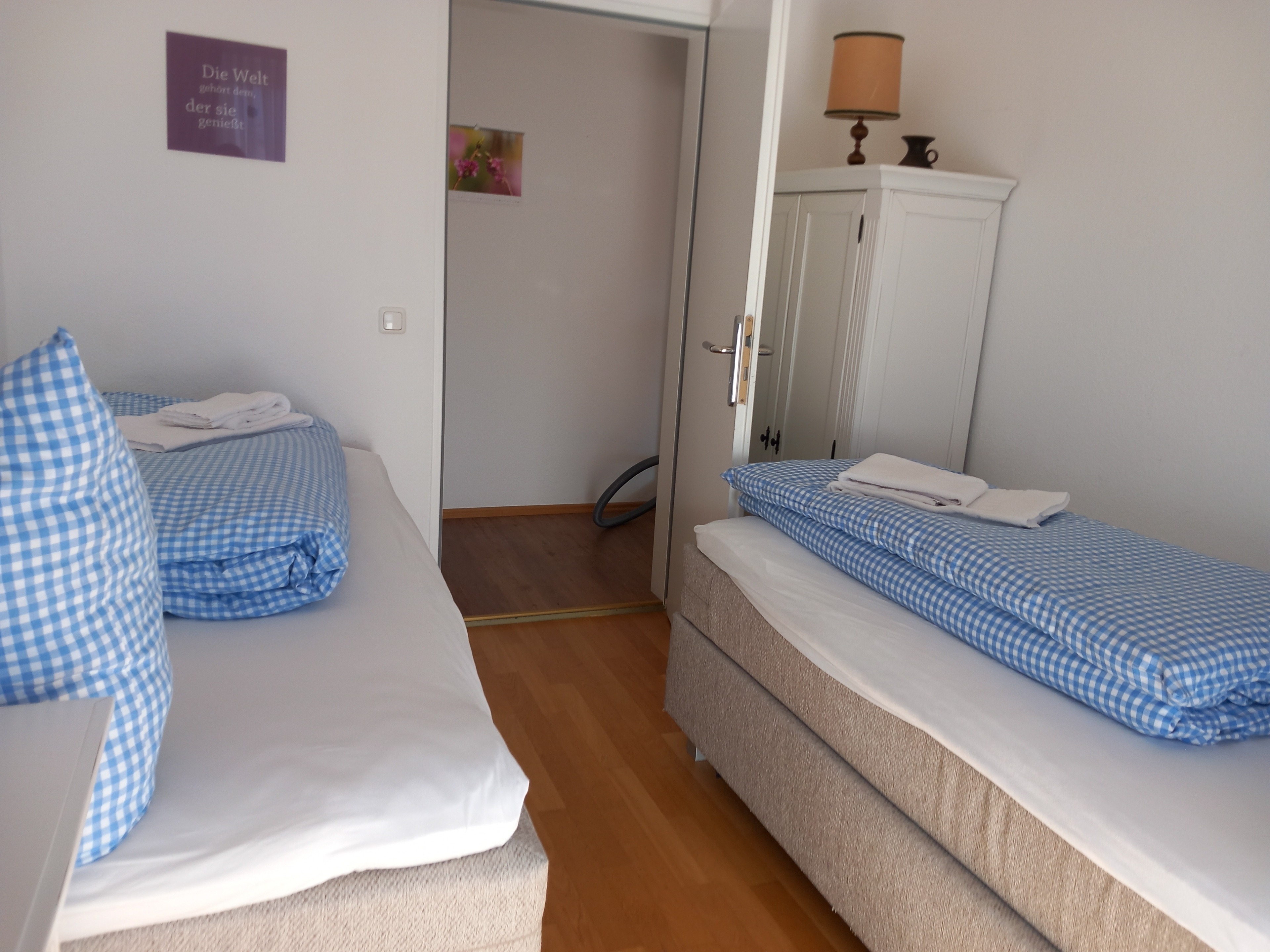 Hochwertige Boxspringbetten sowohl im 2-Bett-Zimmer ( 2 Einzelbetten) als auch im Eltern-Schlafzimmer (mit 2.Kabel-TV).