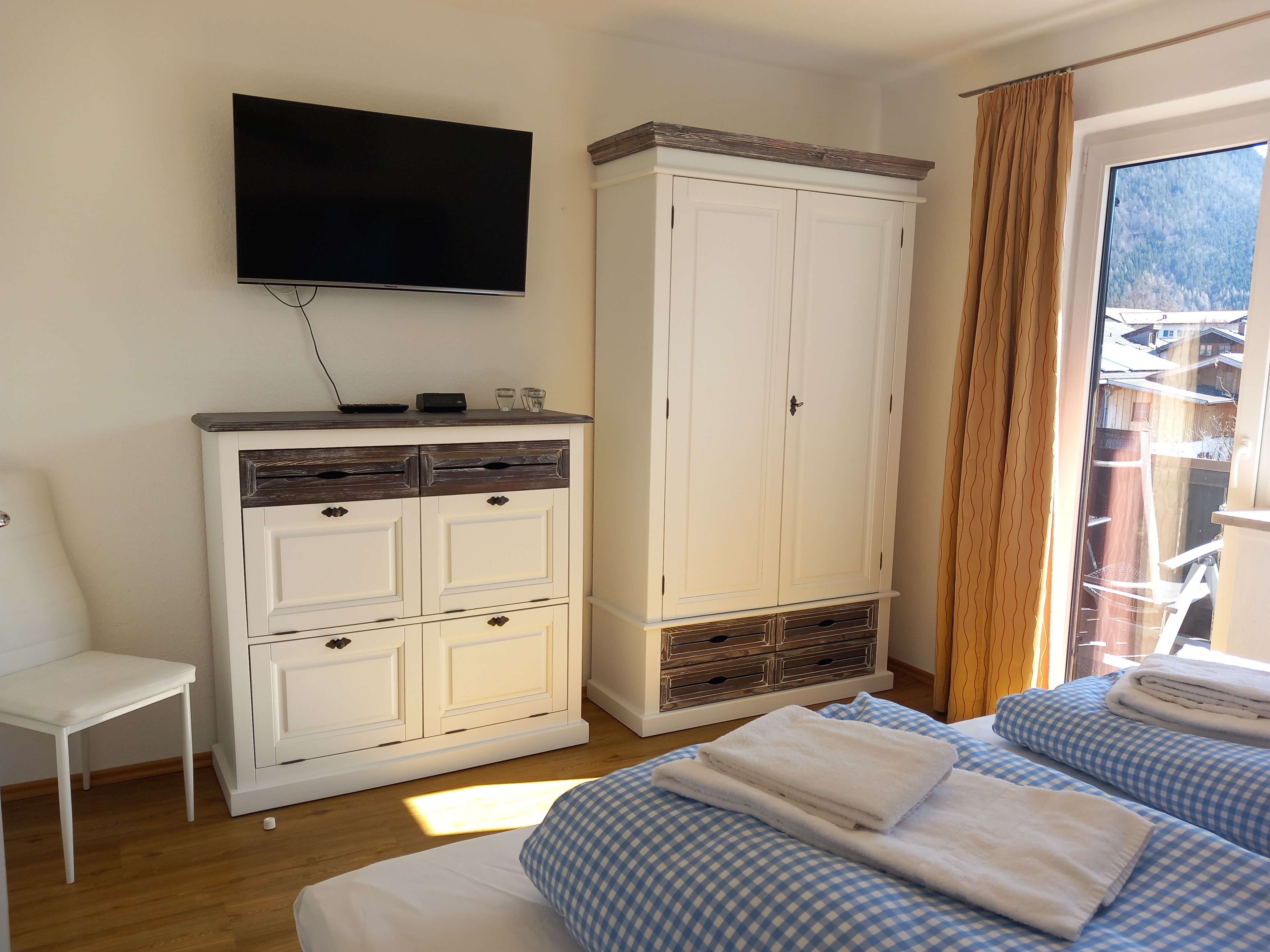 Die Ferienwohnung Rustico (75qm) ist eine neu renovierte, großzügige und freundliche Wohnung mit Blick über die Dächer von Mittenwald.