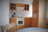 Sonnige und bayerisch, massiv- möblierte Wohnung. Der Mittepunkt ist hier eine freundliche Eingangsdiele. Die Wohnung verfügt über eine separate Küche mit Essplatz (Herd, Backofen, Kühlschrank mit Gefrierfach), sowie Radiorecorder mit CD-Player.