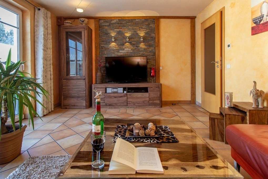 Die exklusiv ausgestattete Wohnung mediterran (86 qm) liegt im ersten Stock. Einrichtung und warme Farben sind harmonisch aufeinander abgestimmt. Abgerundet durch passende Dekoration entsteht hier ein mediterranes Flair.