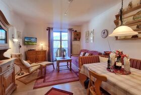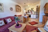 Die im alpenländischen Stil eingerichtete, sonnige 2-Zimmerwohnung Stephanie ***, bietet mit einem Westbalkon beste Voraussetzungen für ein kühles Getränk in der Nachmittagssonne.