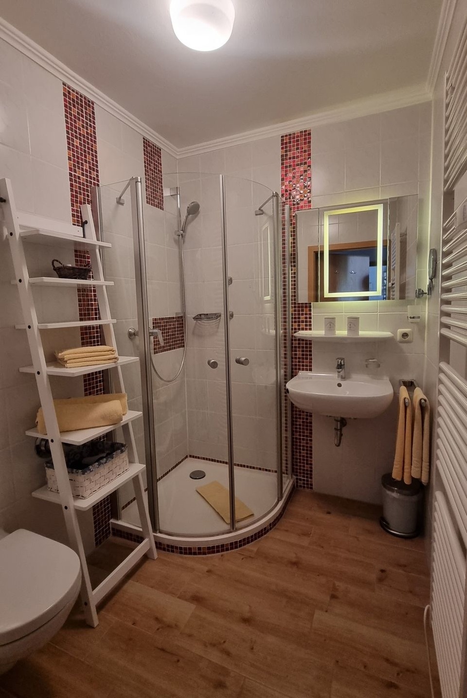 Unser Hallenbad mit Sauna und Infrarotkabine (gegen Gebühr), PkW-Stellplatz, freies WLAN, Fahrradschuppen, Skiraum, Fahrstuhl (nur Haus 5) und Balkon oder Terrasse mit Mobiliar stehen Ihnen zur Verfügung.