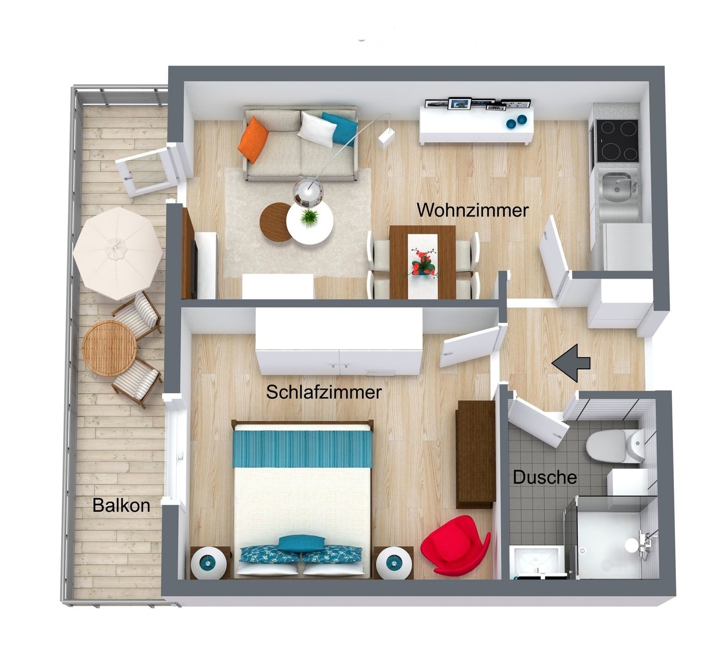 2 Zimmer-Wohnung (48 qm) 1. Obergeschoss.