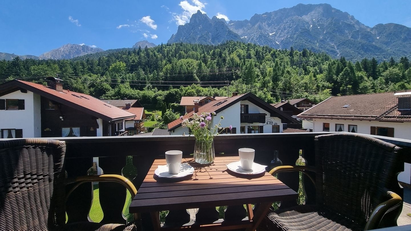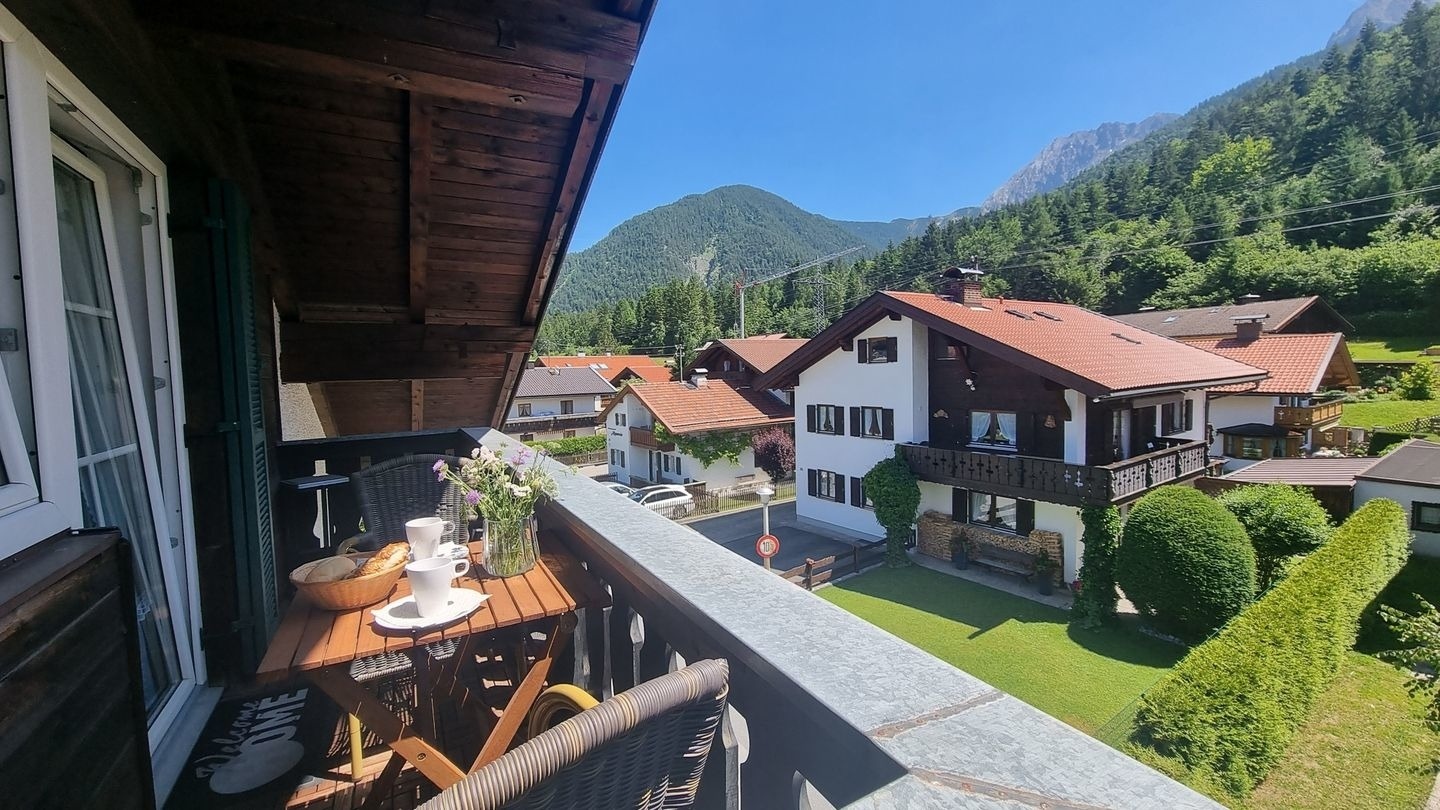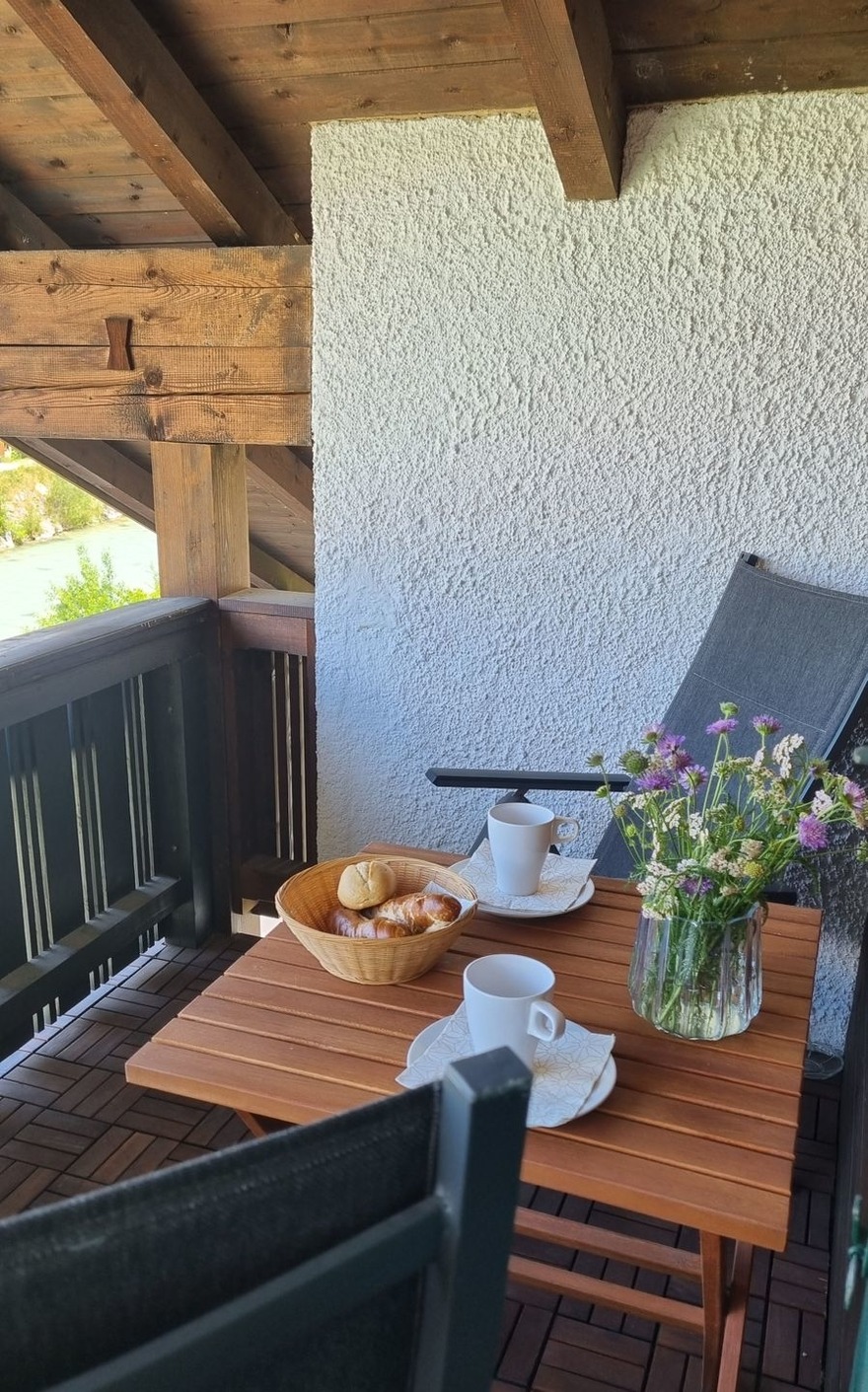 2 Balkone (mit Mobiliar) mit herrlichem Berg-oder Isarblick laden nach den Wanderungen zum Verweilen und träumen ein.